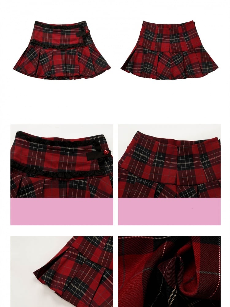 ブラックとレッドのボックスプリーツチェックスカートは、スタイリッシュで機能的です。クラシックなチェック柄とボックスプリーツのディテールが、キュートでありながらシックな雰囲気を演出します。軽やかな素材と快適な着心地で、普段使いに最適です。
