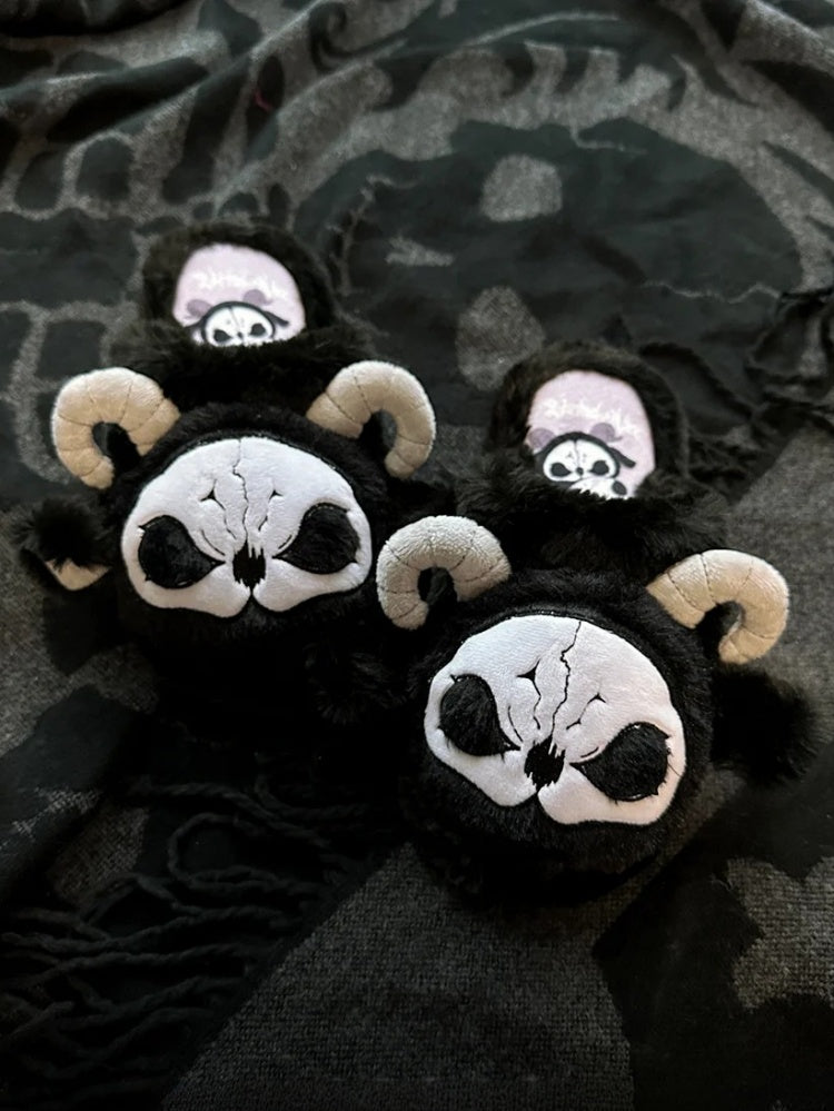 黒と白の死神ゴシック冬用プラッシュスリッパ