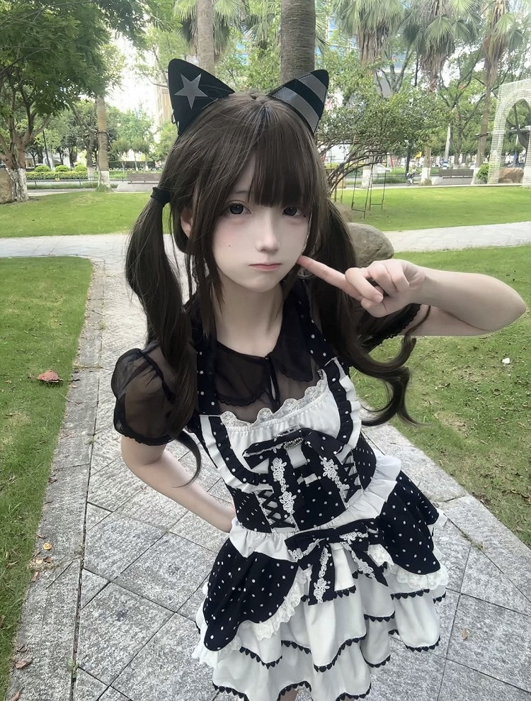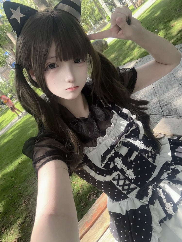 黒と白のオールドスクールロリータファッションドレス蝶結びロリータJSKセット