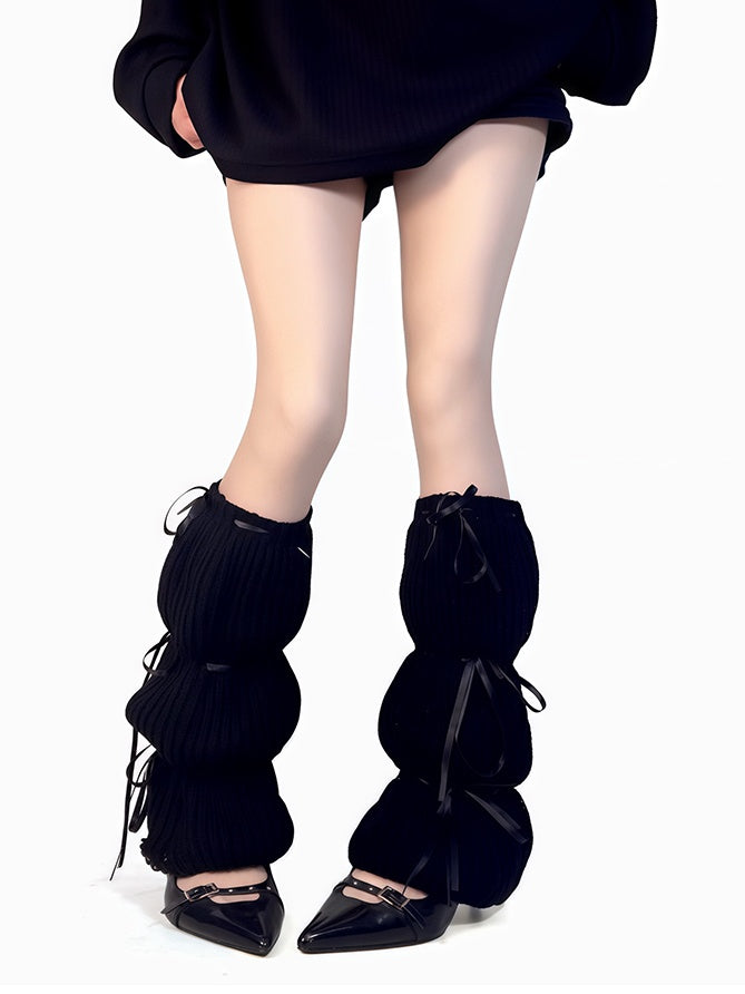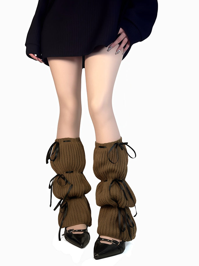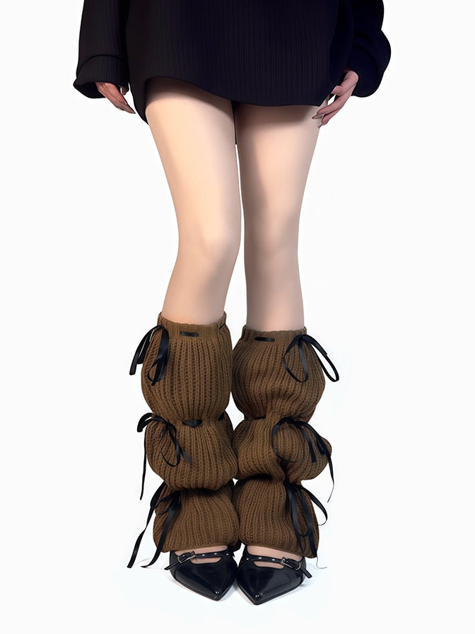 ブラック/アプリコット/ブラウン ニットレッグウォーマー