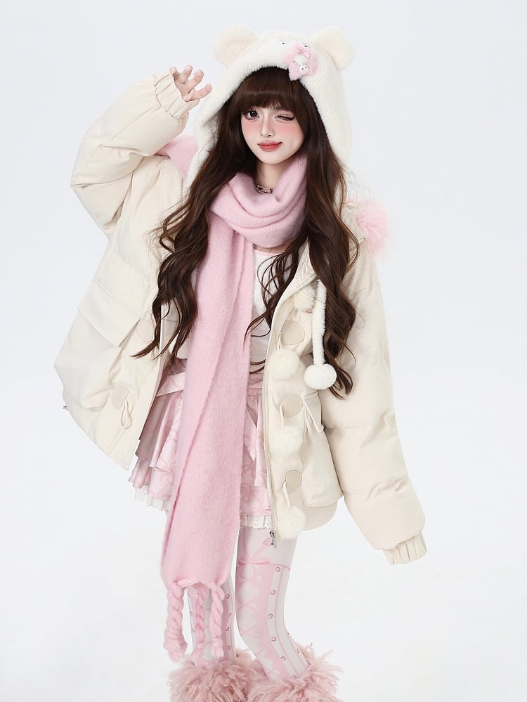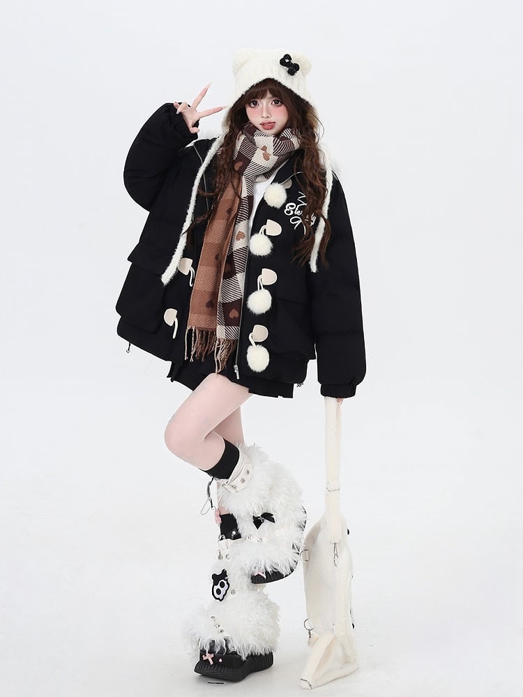ブラックアプリコットのフリース裏地とフェイクファートリムのフード付きコートで、暖かくスタイリッシュに過ごしましょう。フリースの裏地が暖かさを保ち、フェイクファーのトリムが可愛らしさをプラス。肌寒い日にぴったりです!