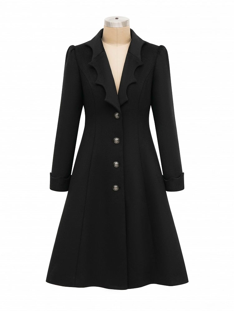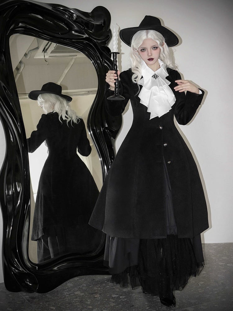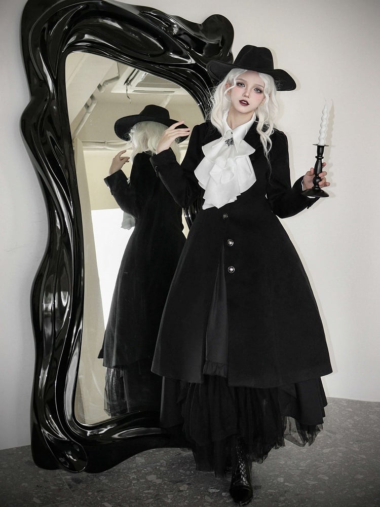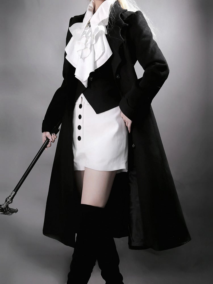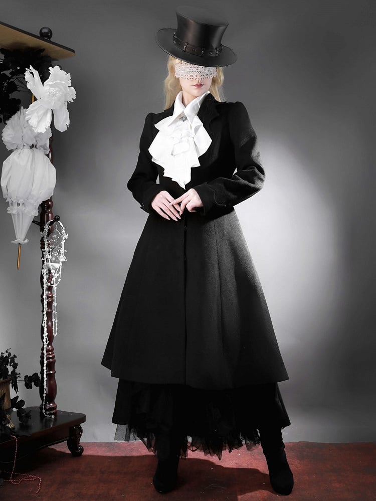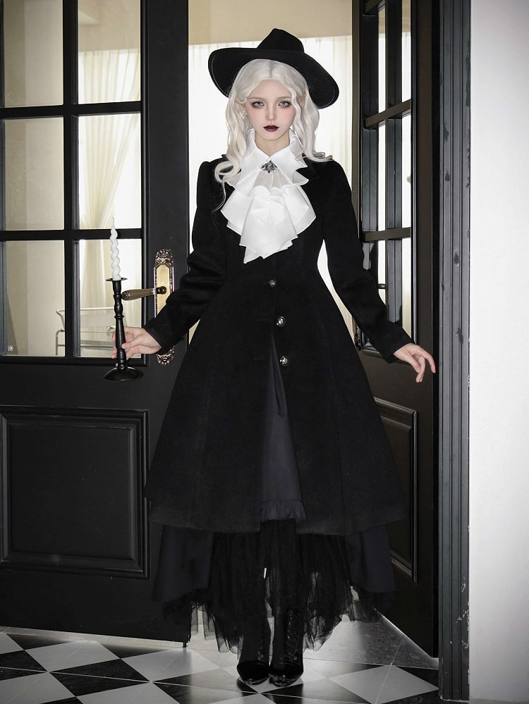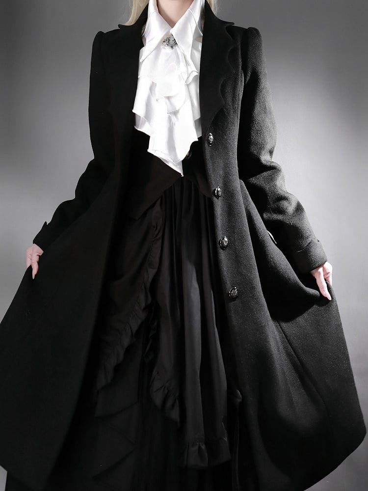 この愛らしい黒のカーブしたコウモリの羽根模様の襟が特徴的なゴシックロリータコートは、ワードローブに個性的なスタイルをプラスするのに最適です。カーブしたコウモリの羽根模様の襟とゴシックロリータデザインで、どんな人混みの中でもひときわ目を引くこと間違いなし。このマストハブコートで、暖かくスタイリッシュに過ごしましょう!