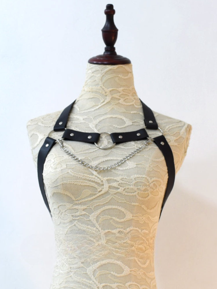 ブラックサイバーパンクPUストラップチェーンハーネス