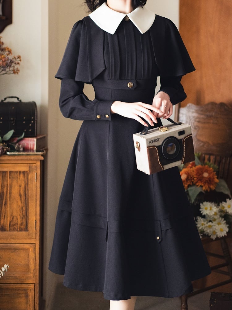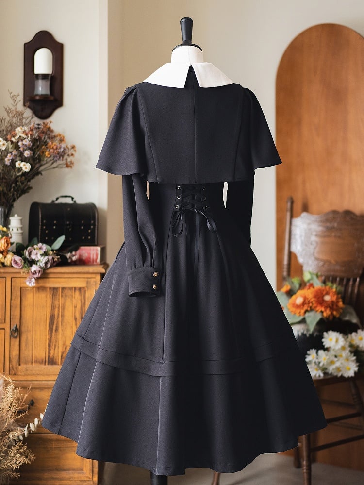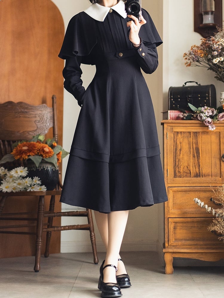 ブラックの取り外し可能なケープデザインのエレガントなレトロなスリミングドレス