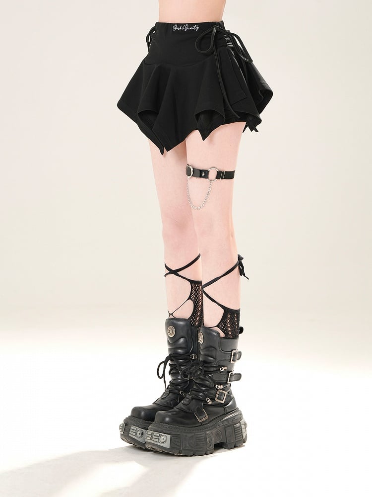ブラック ドローストリング ウエスト ハンカチヘム ミニスカート