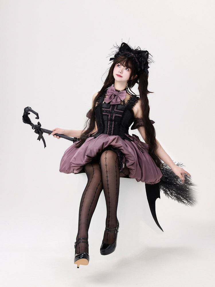 黒と白のオールドスクールロリータファッションドレス蝶結びロリータJSKセット
