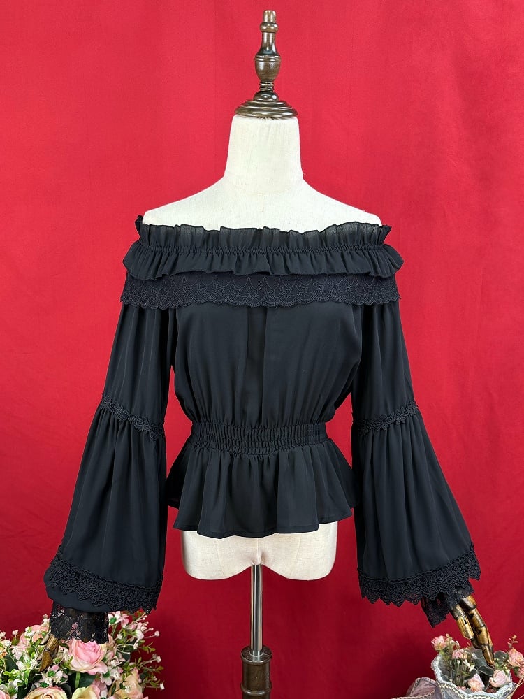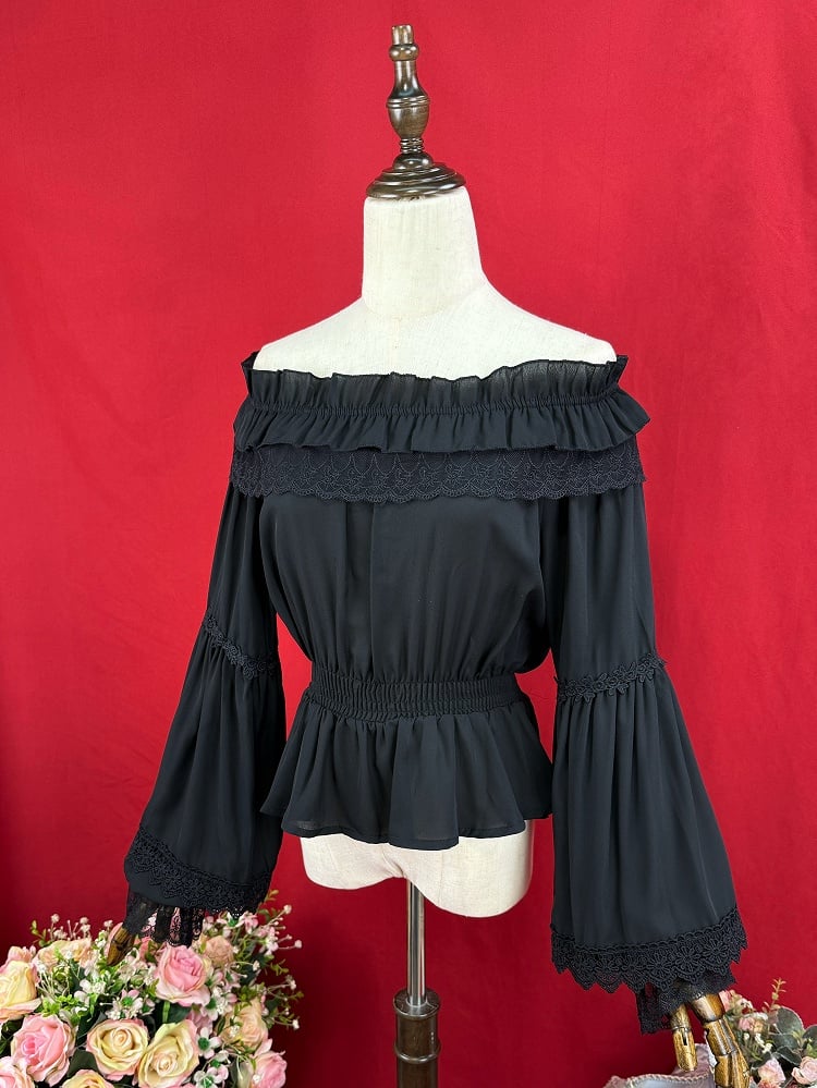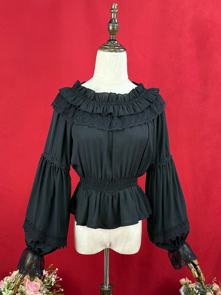 愛らしいブラックの伸縮性のあるネックラインシフォンブラウス。スモック加工の伸縮性のあるウエストが、快適で美しい着心地を演出します。流れるようなシフォン素材がエレガントな雰囲気を添え、伸縮性のあるネックラインで着脱もスムーズ。どんなシーンにもぴったりです。