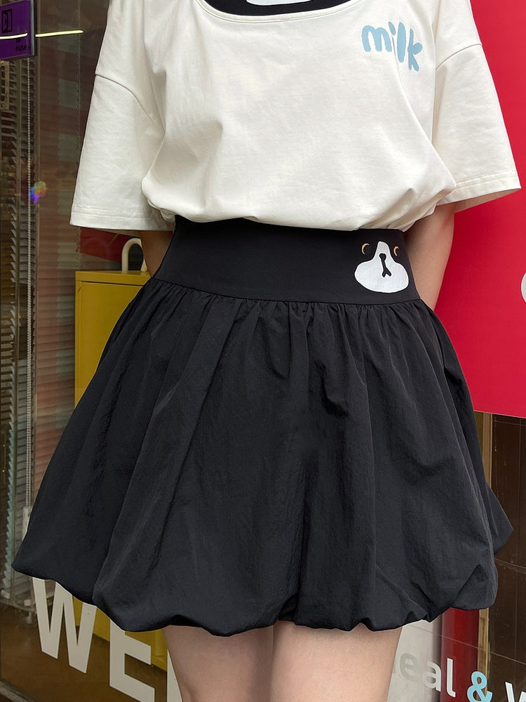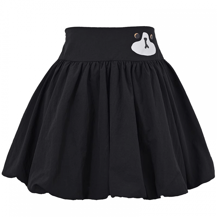 ブラック 伸縮性ウエスト キティプリント バブルスカート