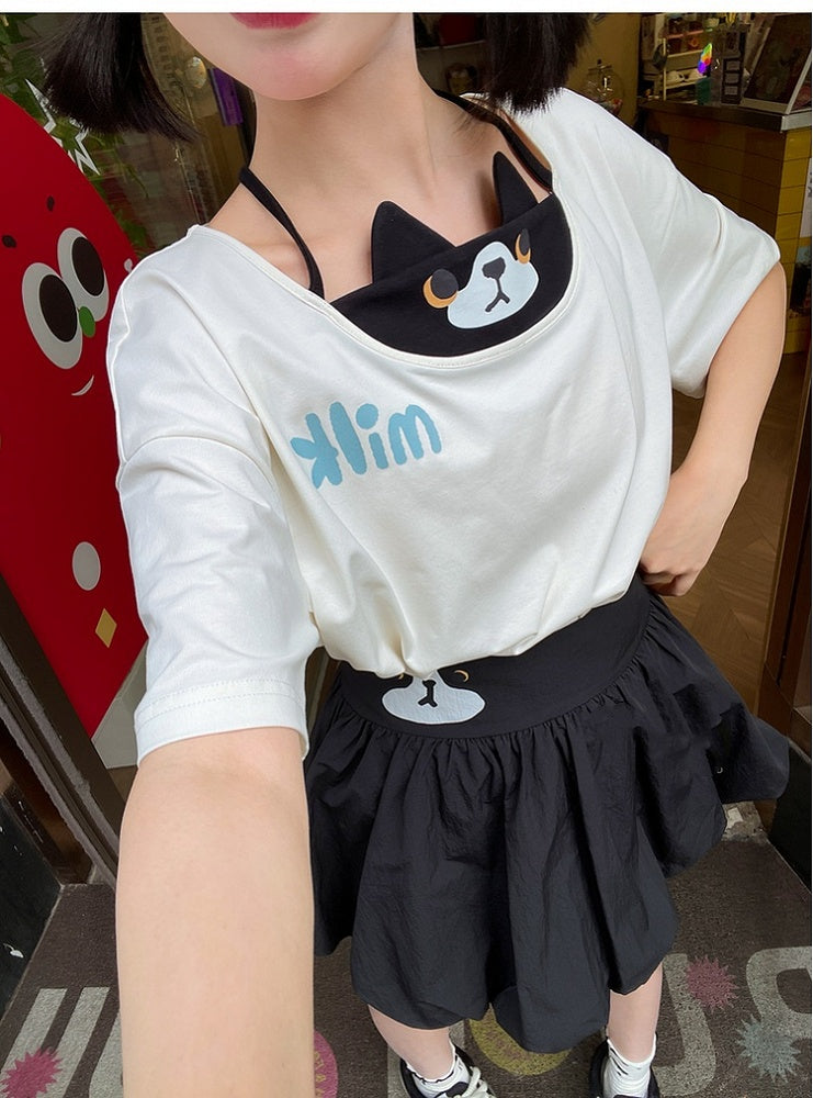 ブラック 伸縮性ウエスト キティ バブルスカート プリント