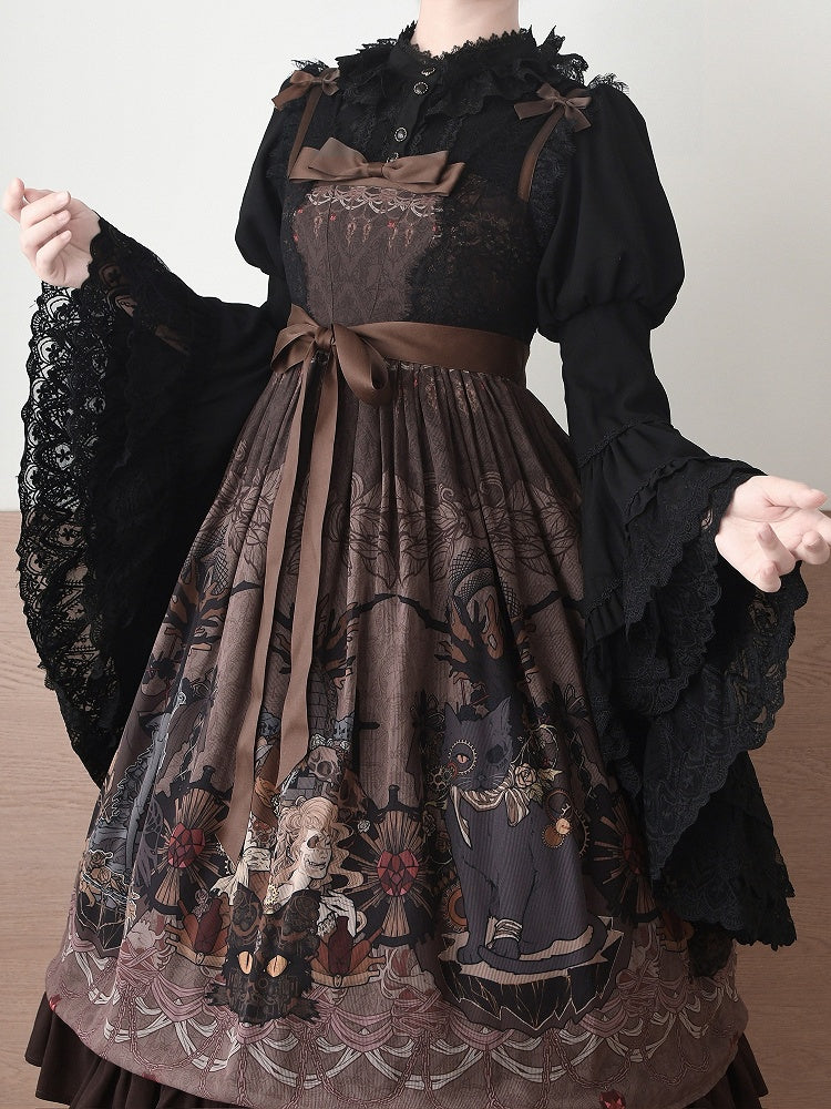 黒と白のオールドスクールロリータファッションドレス蝶結びロリータJSKセット