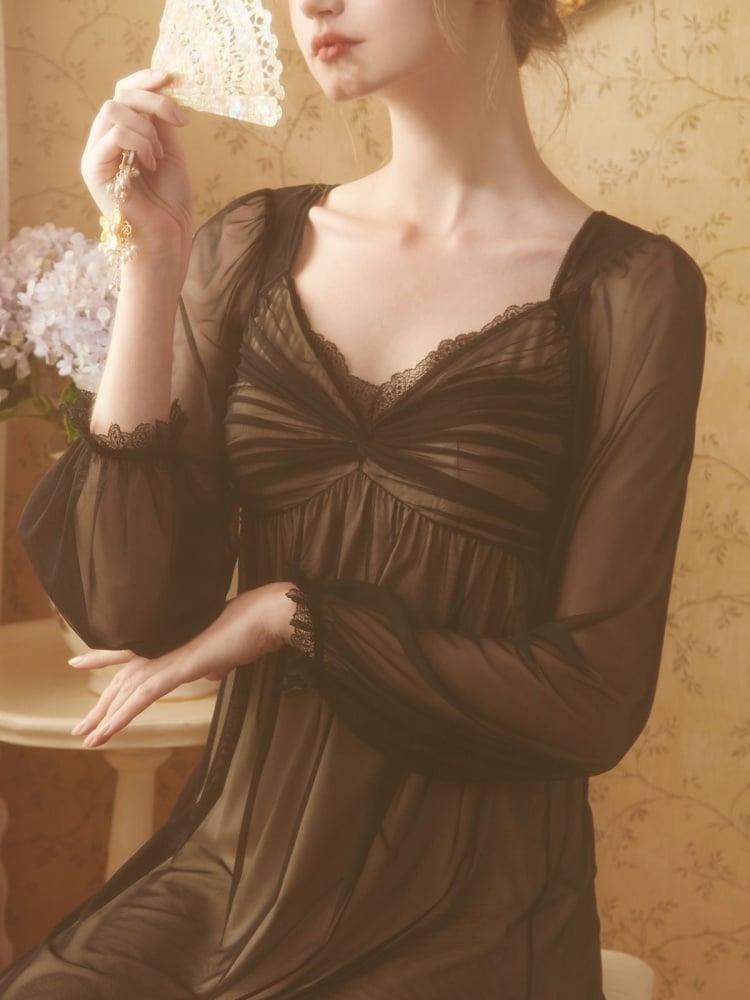 ブラックギャザリングヴィンテージチュールナイトガウン