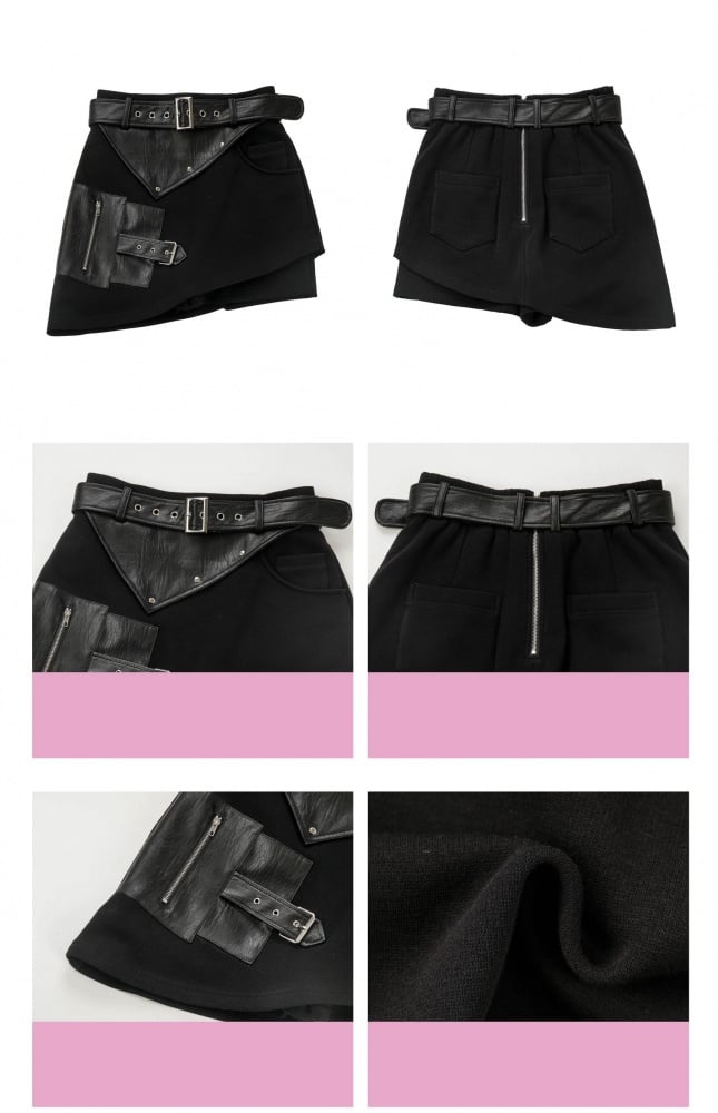 ウエストベルト付きブラックゴシックアシンメトリースカート