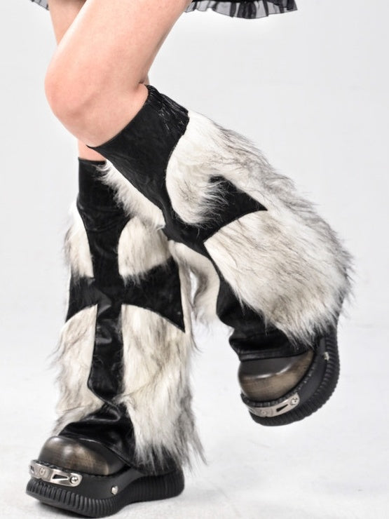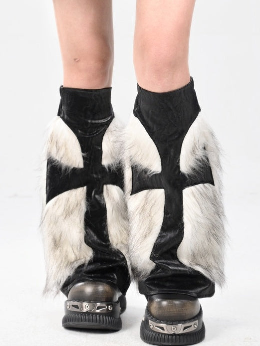 ブラックゴシッククロスシャギーPUレッグウォーマー