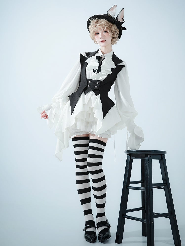 黒と白のオールドスクールロリータファッションドレス蝶結びロリータJSKセット
