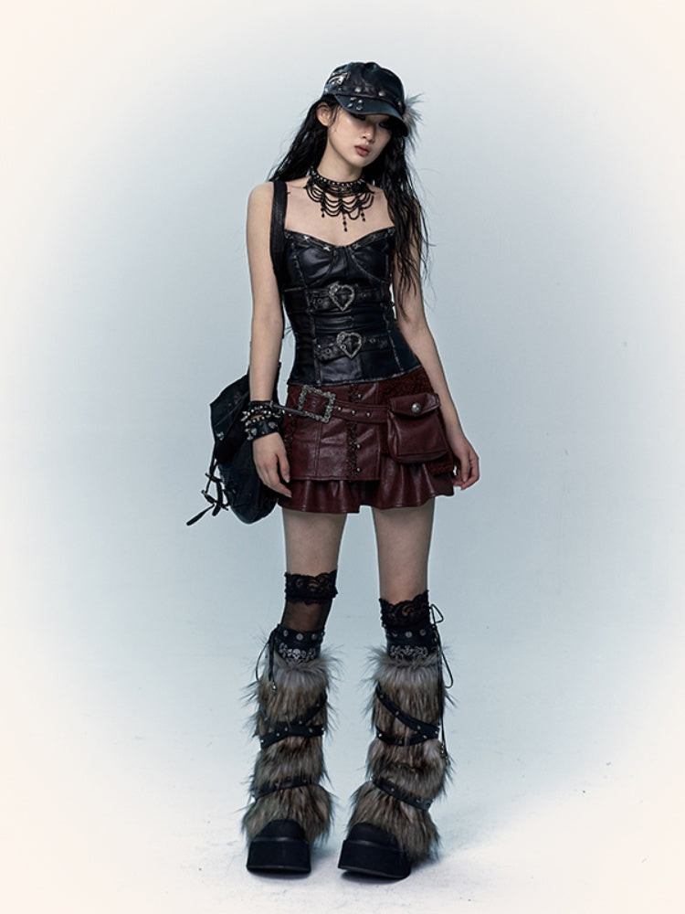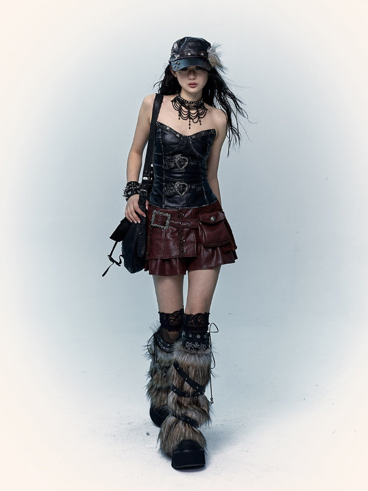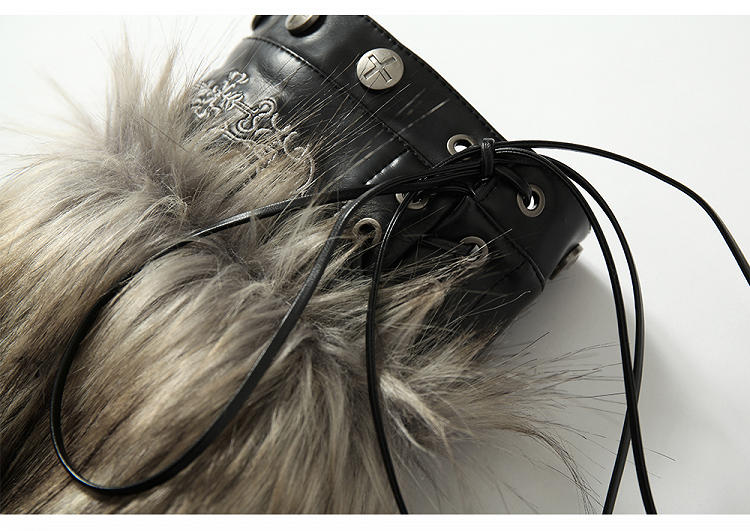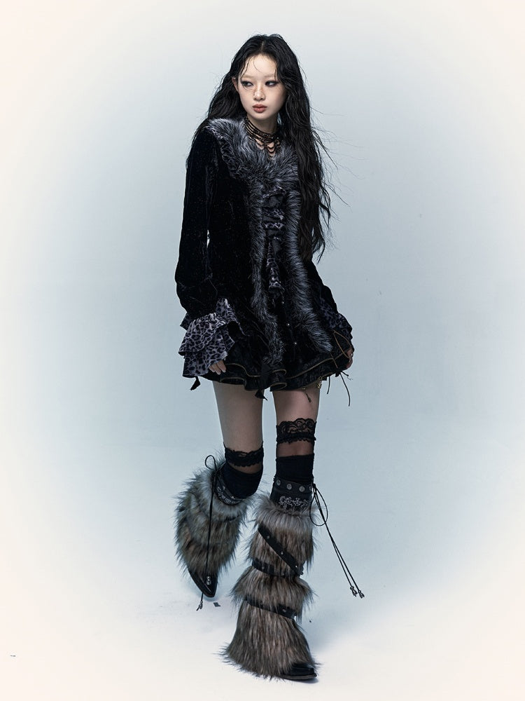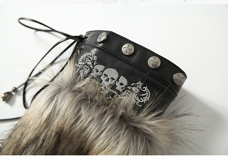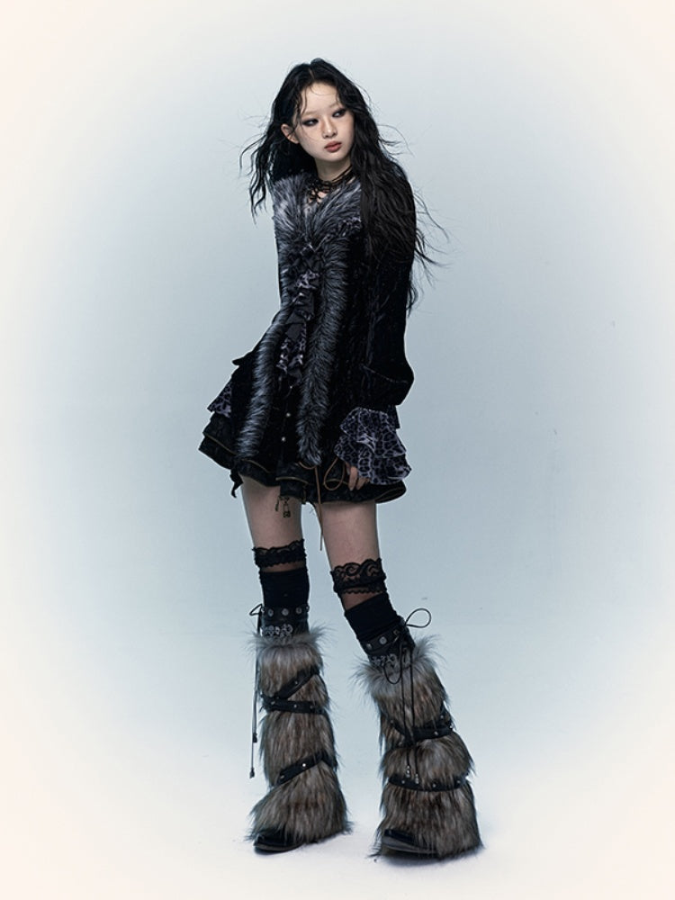 ブラック&グレー スケルトン シャギー レッグウォーマー