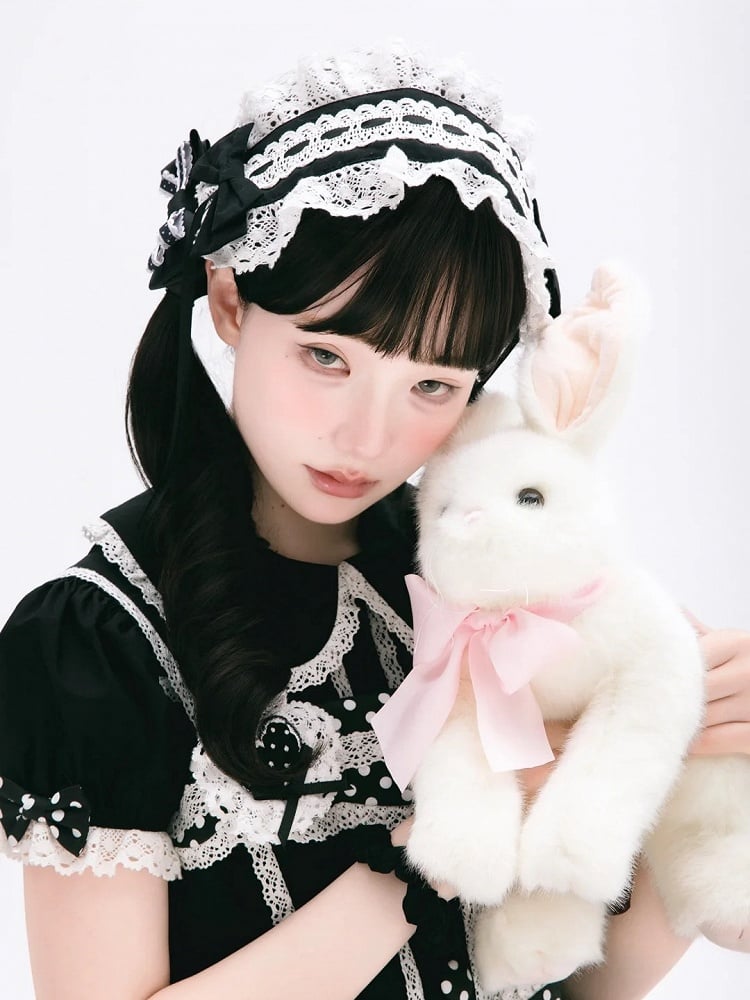 黒と白のオールドスクールロリータファッションドレス蝶結びロリータJSKセット