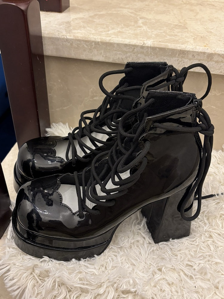 ブラックヒール ゴシック ラップアラウンド ロリータ ハイアンクルストラップ