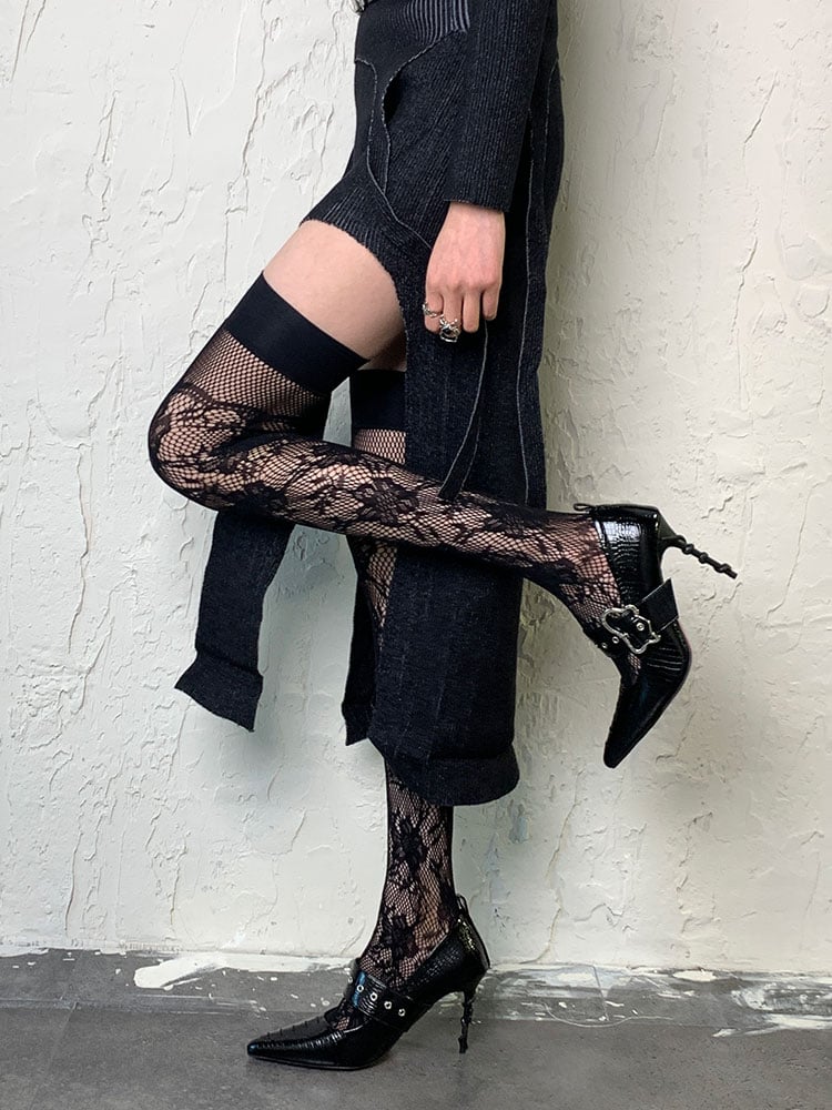 このキュートな黒のオーバーニーソックスで、周りの視線を釘付けにしましょう!繊細な花柄とユニークなくり抜きデザインが特徴のこのストッキングは、どんなコーディネートにも甘さをプラスしてくれます。ロング丈なので、暖かさと遊び心をプラスして、ワードローブに華を添えてくれます。
