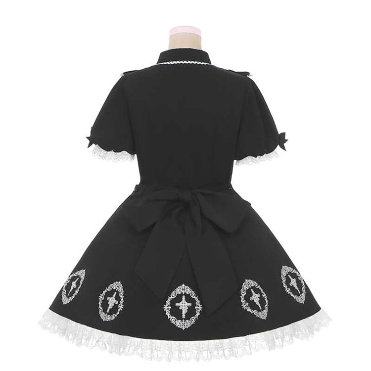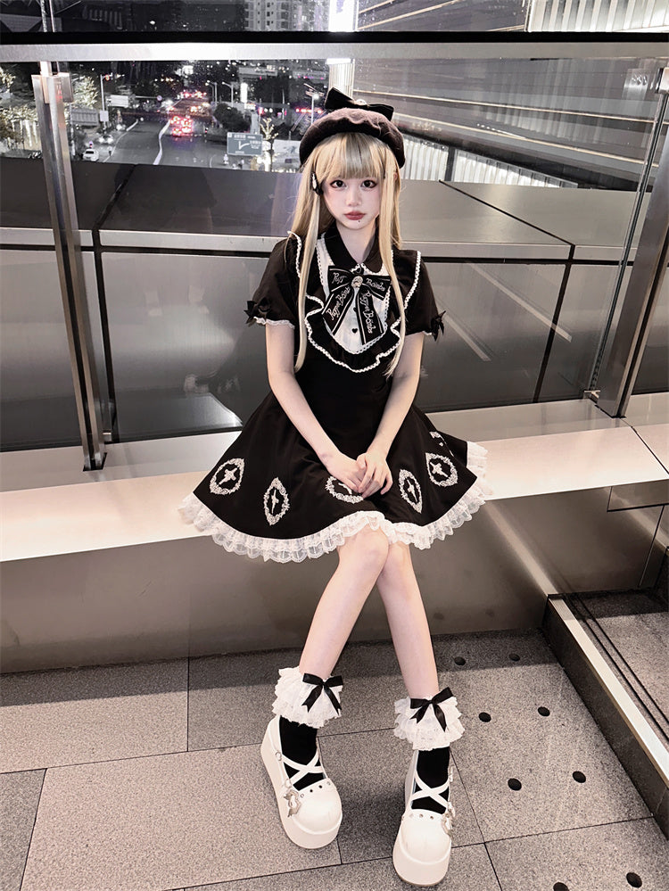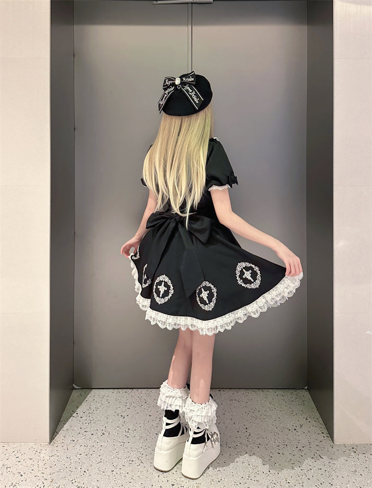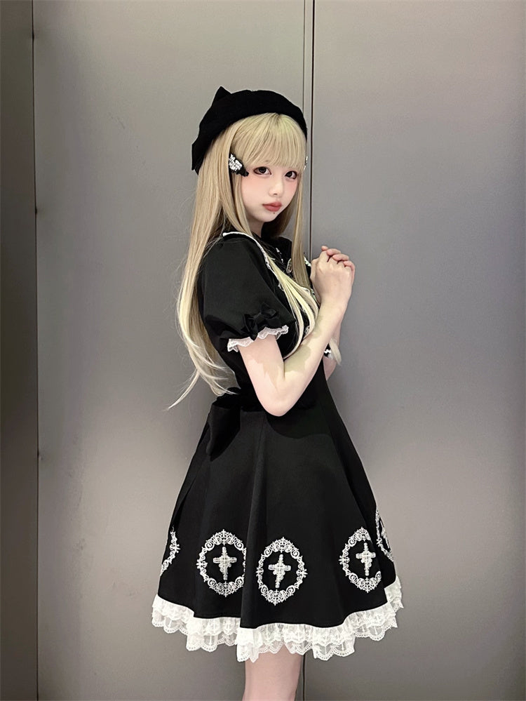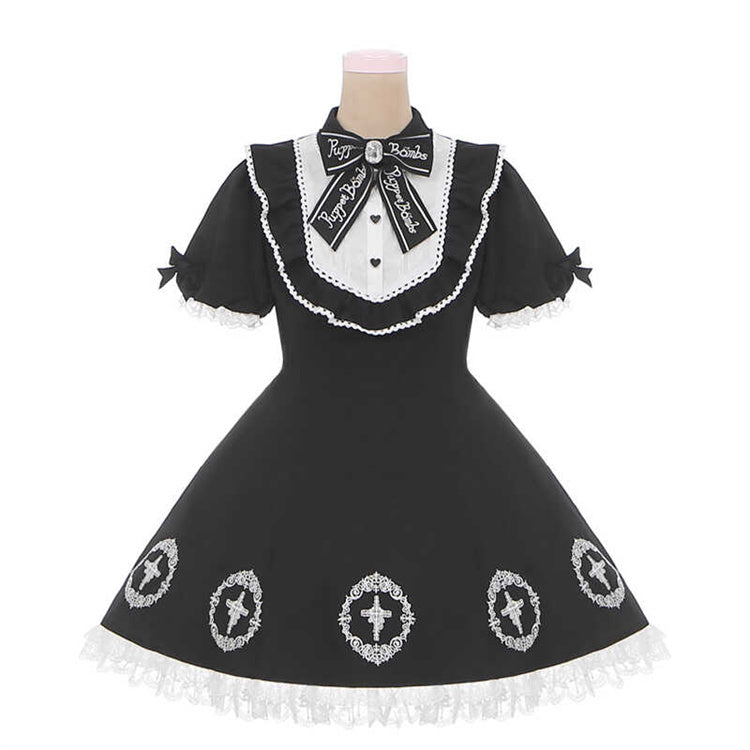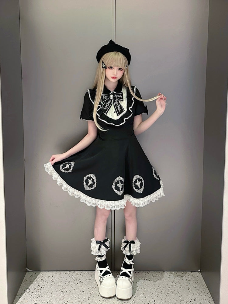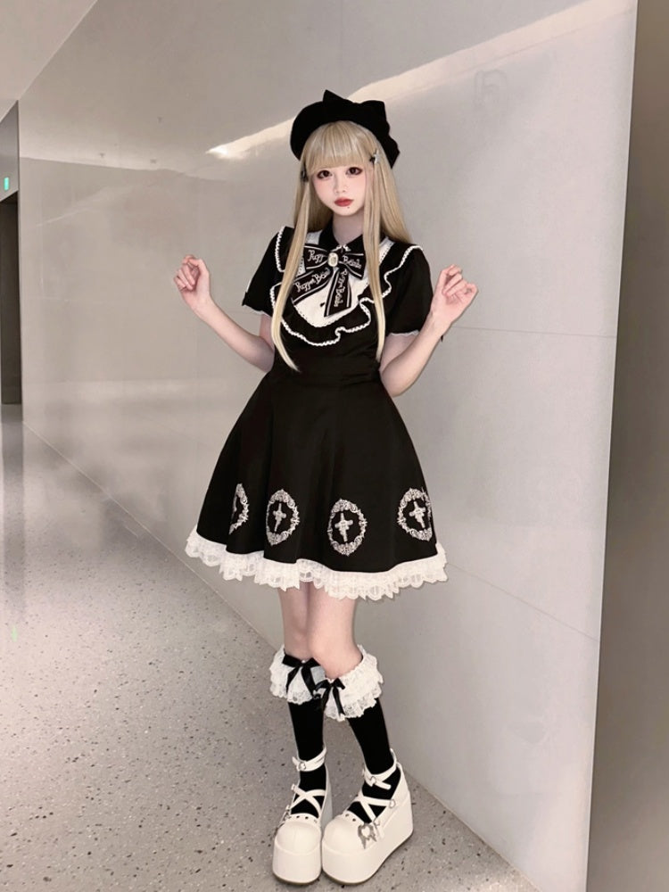 黒と白のオールドスクールロリータファッションドレス蝶結びロリータJSKセット