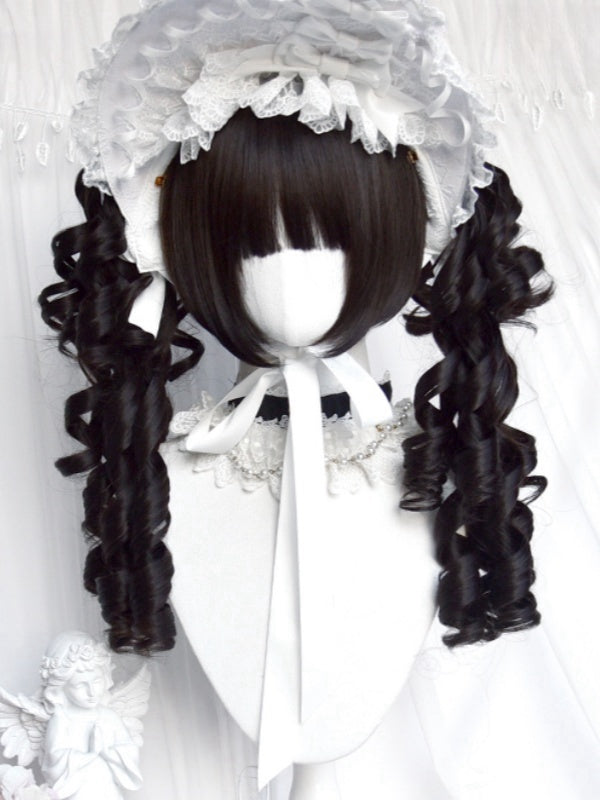 黒髪ジライケイショートボブカットウィッグ(前髪あり)+ダブルポニーテールクロークリップ