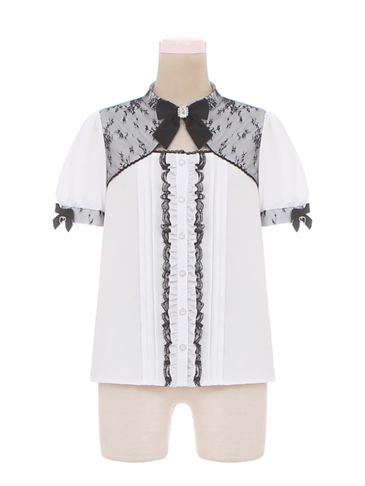 ブラック ジライケイ ホワイト カットアウト レーストリム 蝶結び フリルディテール ブラウス