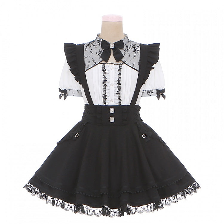 黒と白のオールドスクールロリータファッションドレス蝶結びロリータJSKセット