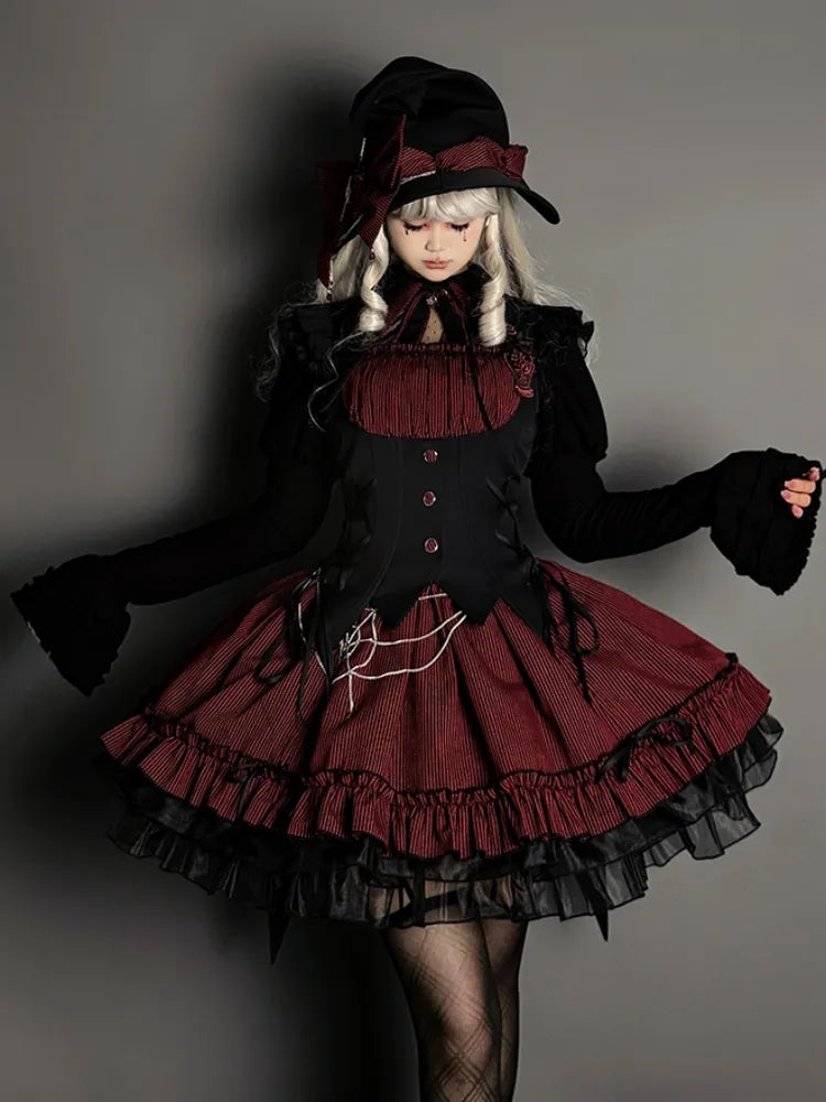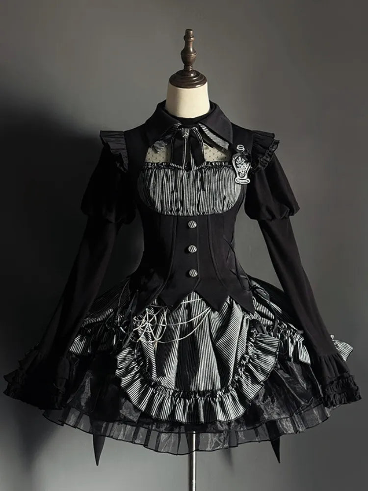黒と白のオールドスクールロリータファッションドレス蝶結びロリータJSKセット