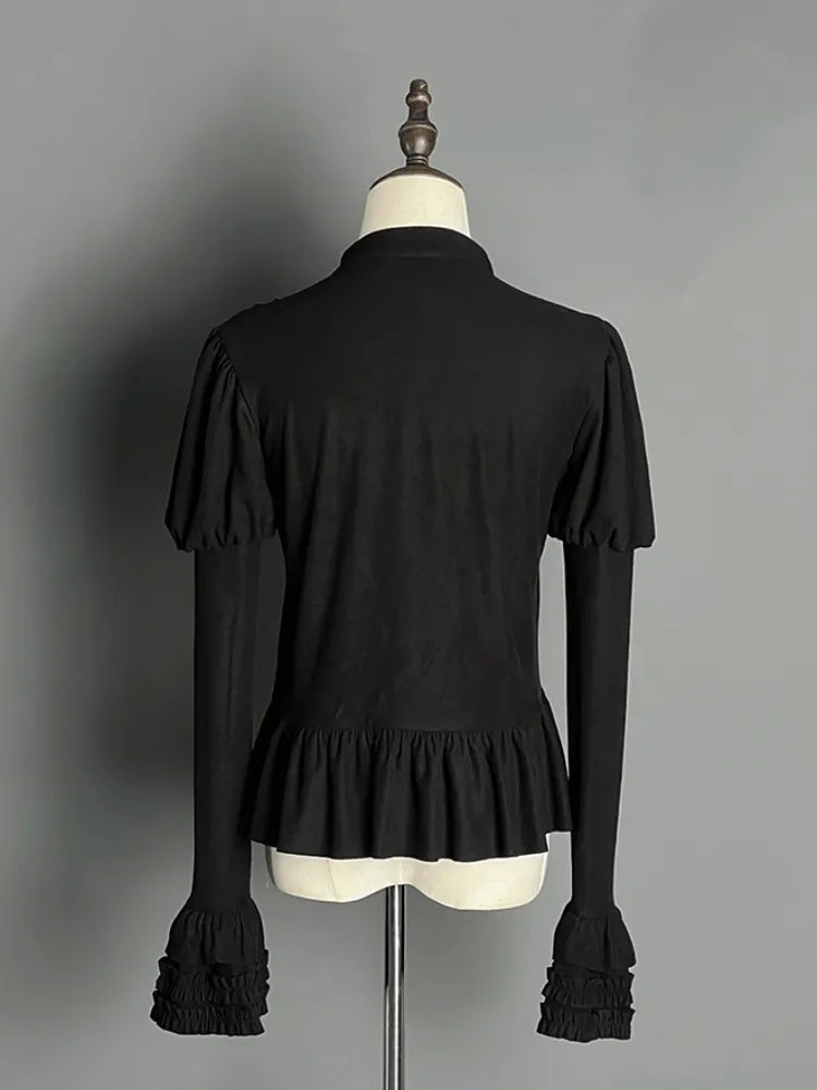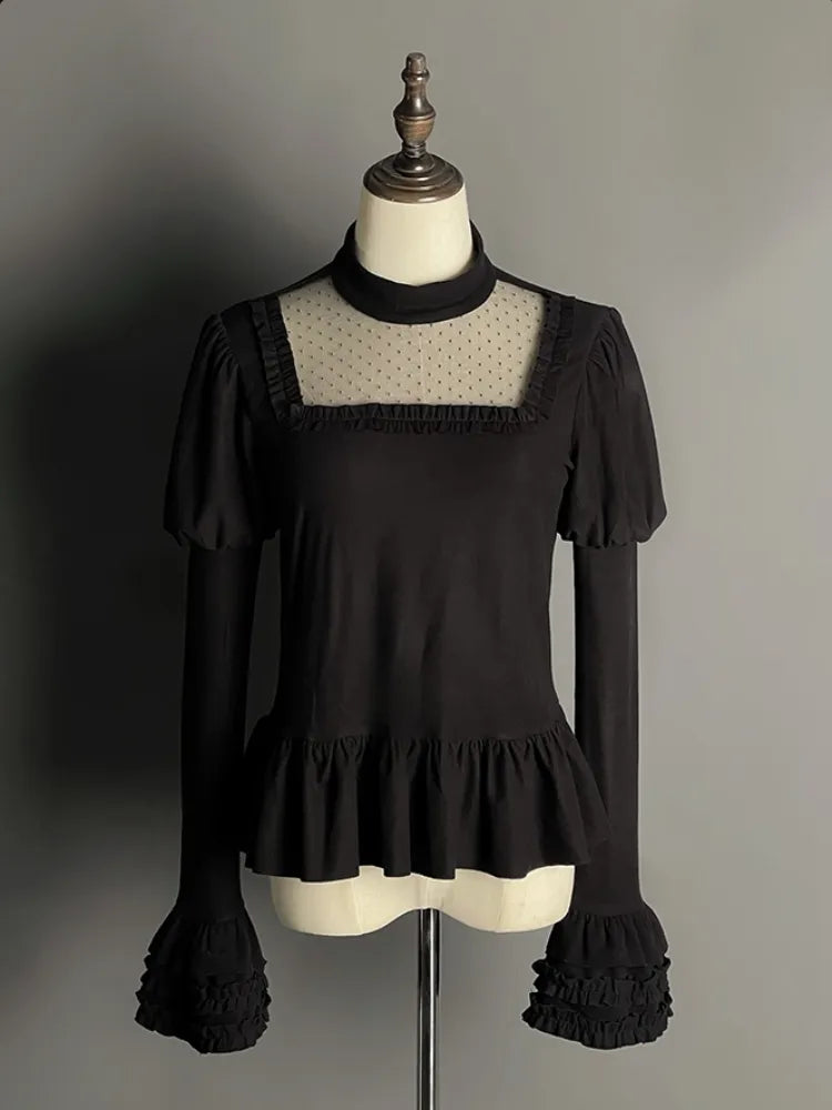ブラック ジュリエットスリーブ フラウンスヘムライン ロングスリーブ トップス