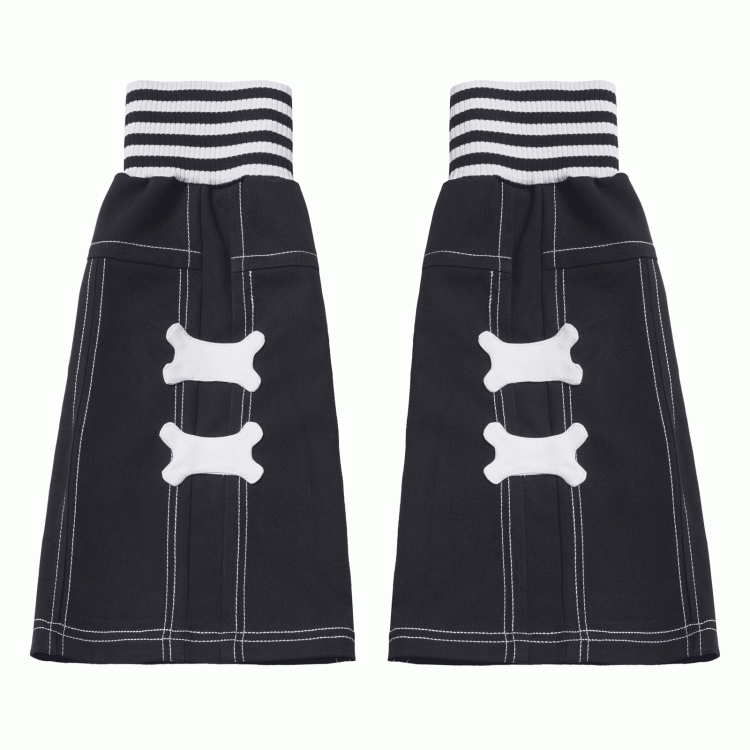 伸縮性のある袖口、骨のアップリケ、ブラックのレッグウォーマー