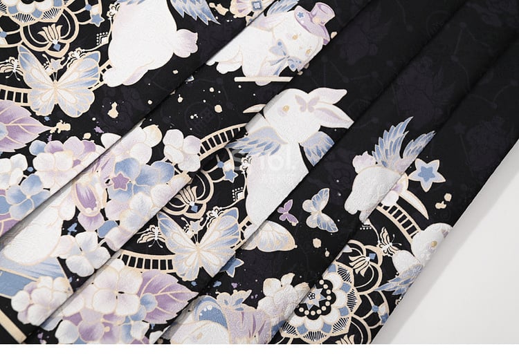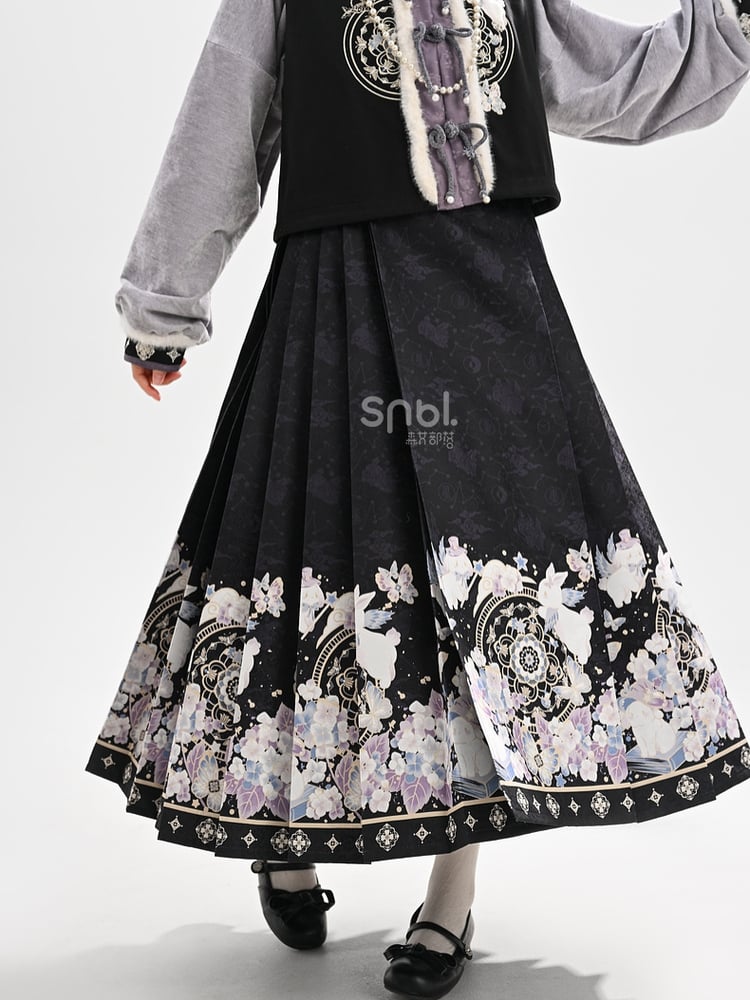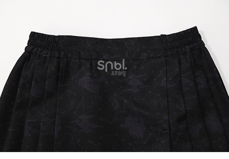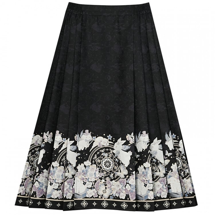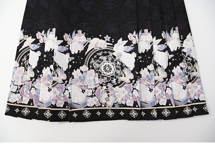 ブラックムーンラビット チャイナドレス風プリーツミディスカート