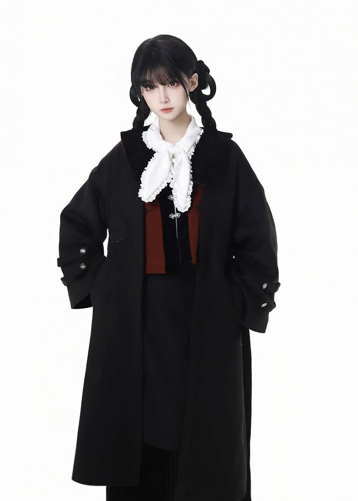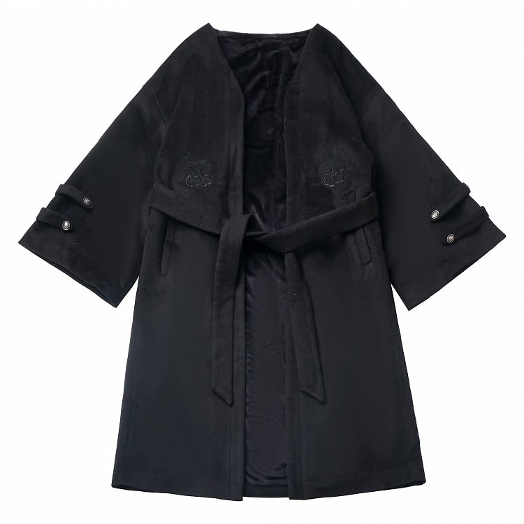 ブラック オープンプラケット チェリー トーナル 刺繍 コート