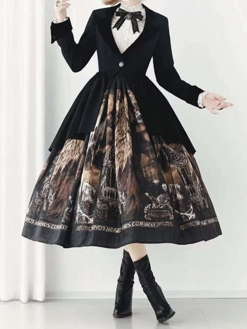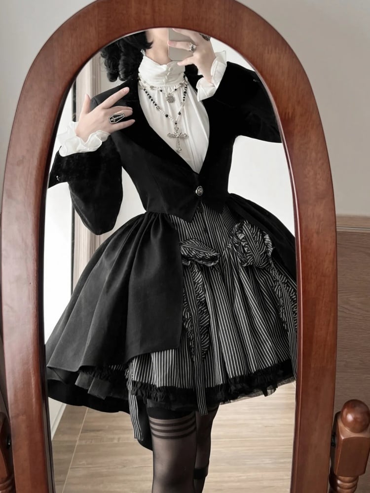 黒と白のオールドスクールロリータファッションドレス蝶結びロリータJSKセット