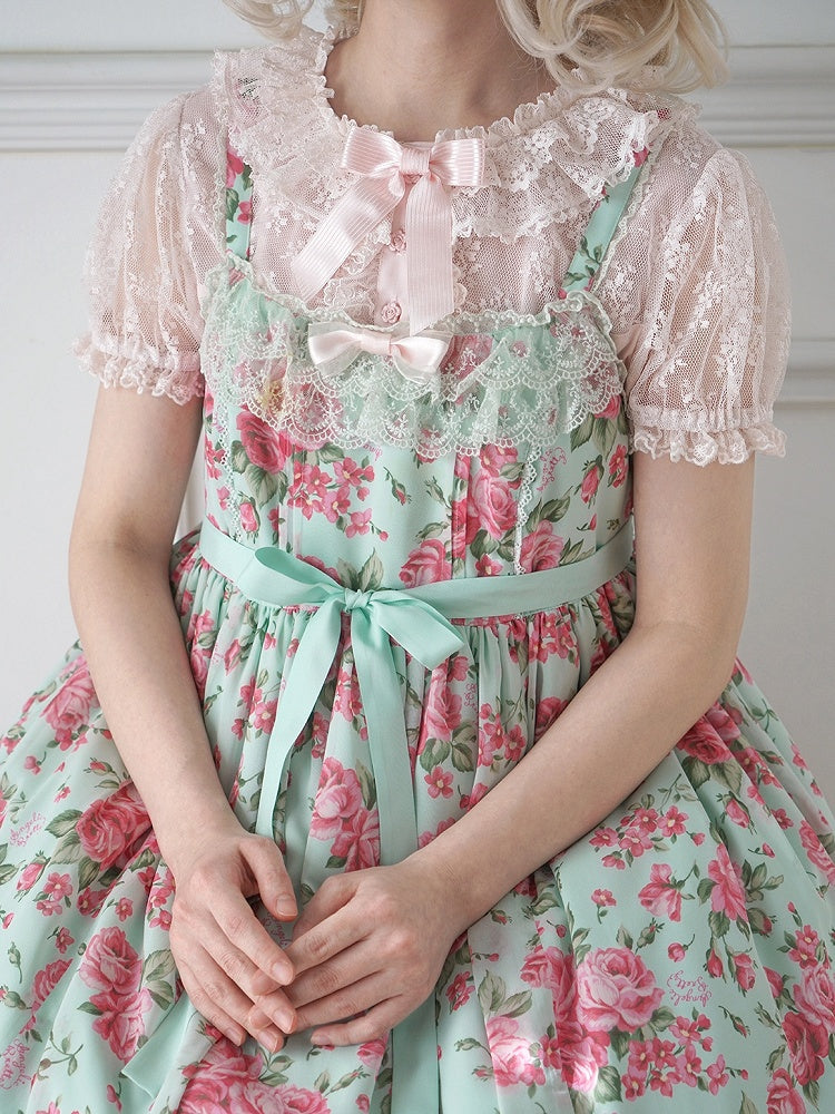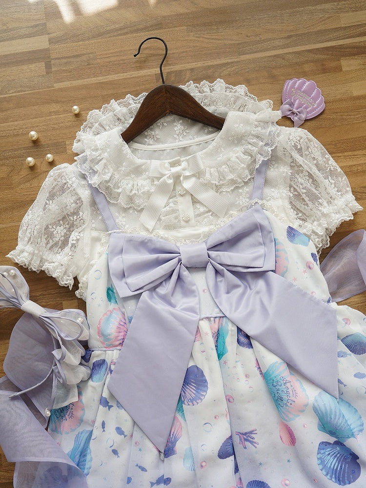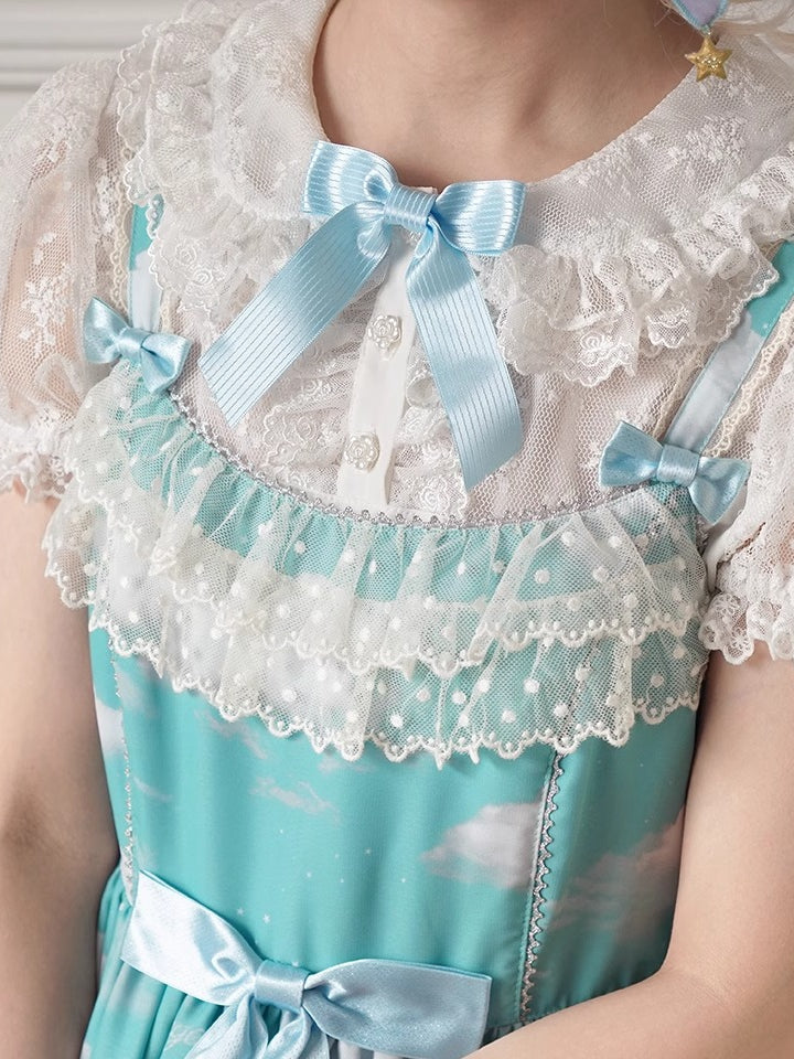 青と白のオールドスクールロリータファッションドレス 蝶結びディテール JSK セット