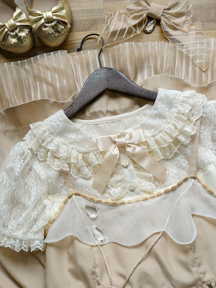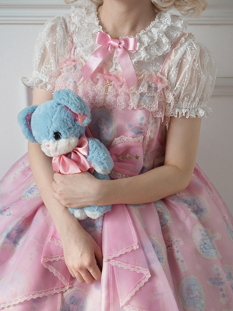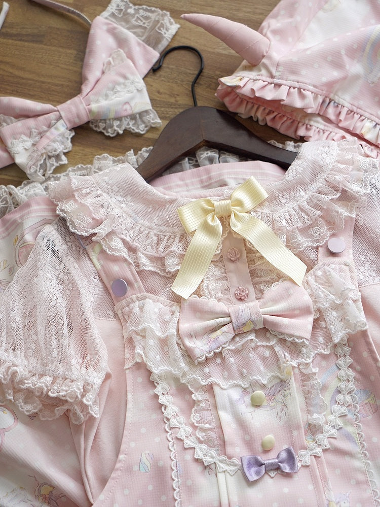 ピンクと白のオールドスクールロリータファッションドレス、蝶結びディテール、ロリータJSKセット