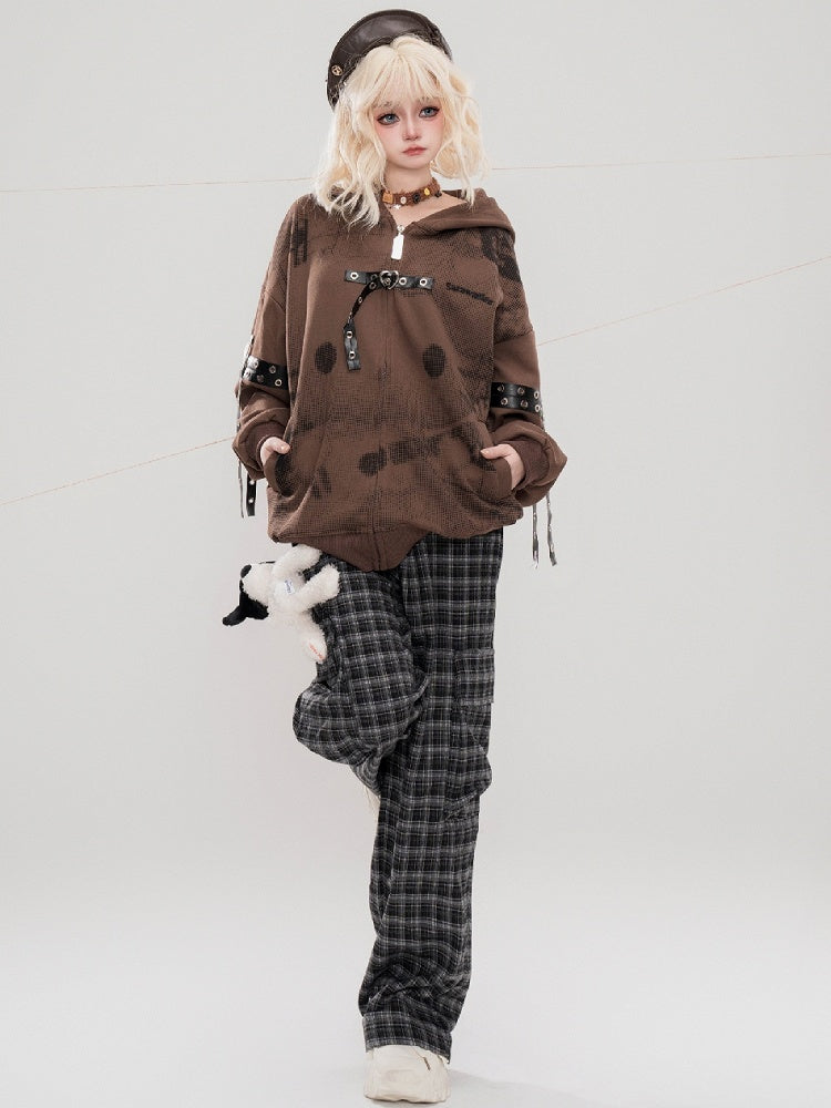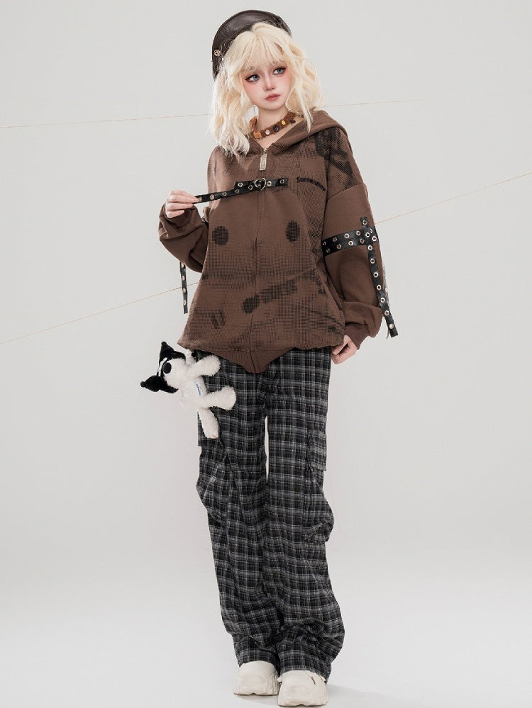 ブラックのチェック柄カーゴパンツで、スタイリッシュでキュートな装いを。便利なカーゴポケットとストレートレッグのカットが、どんなコーディネートにも機能性と華やかさをプラス。普段使いにぴったりです。