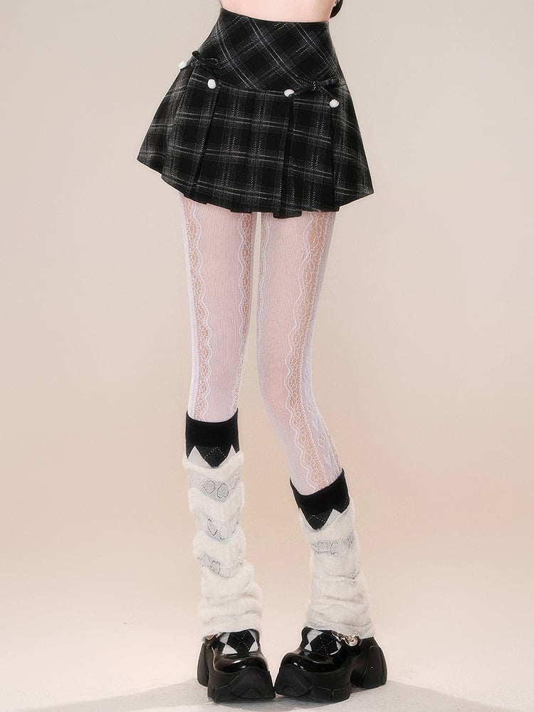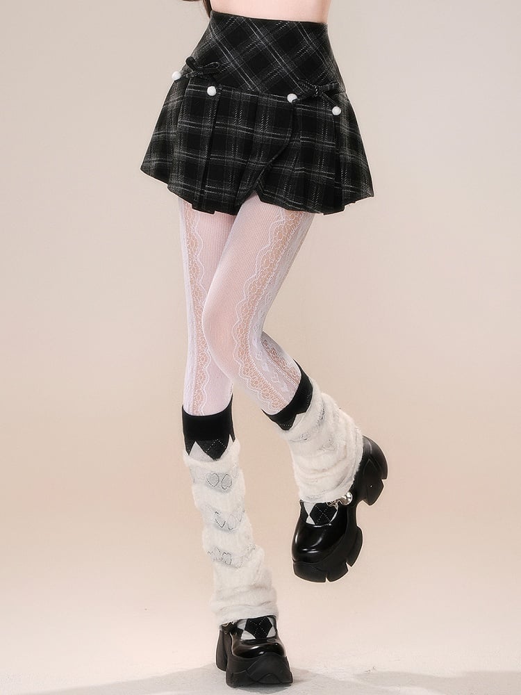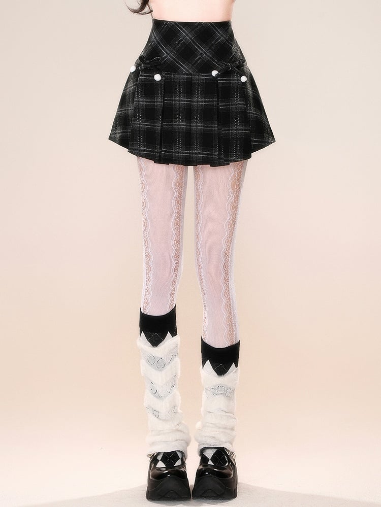 ブラックチェック柄取り外し可能な蝶結びスカート