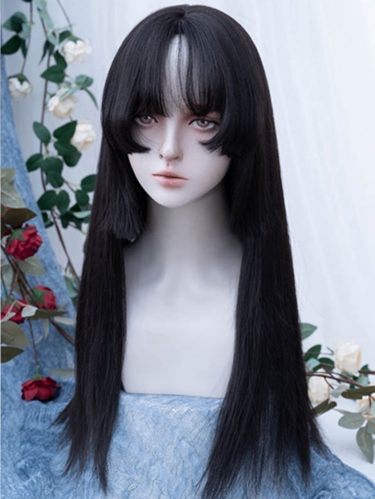 ブラックプリンセスカットロングストレート合成ウィッグ