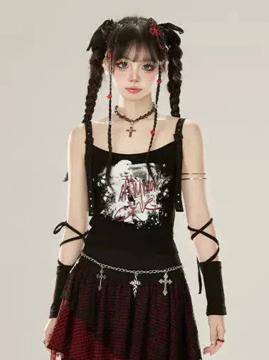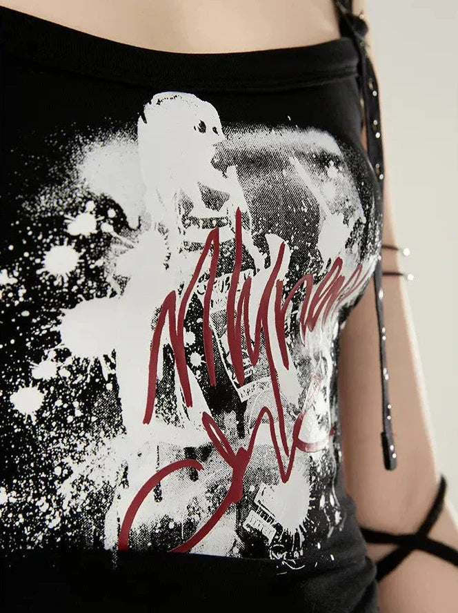 ブラックプリントキャミソールで、ワードローブにキュートなアクセントをプラス。トレンドのレターグラフィティデザインが特徴のこのキャミソールは、どんなコーディネートにも個性をプラスしてくれます。この愛らしいアイテムで、あなただけの個性的なスタイルをアピールしましょう。