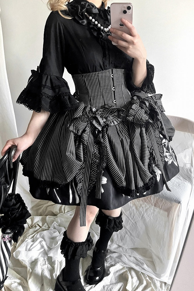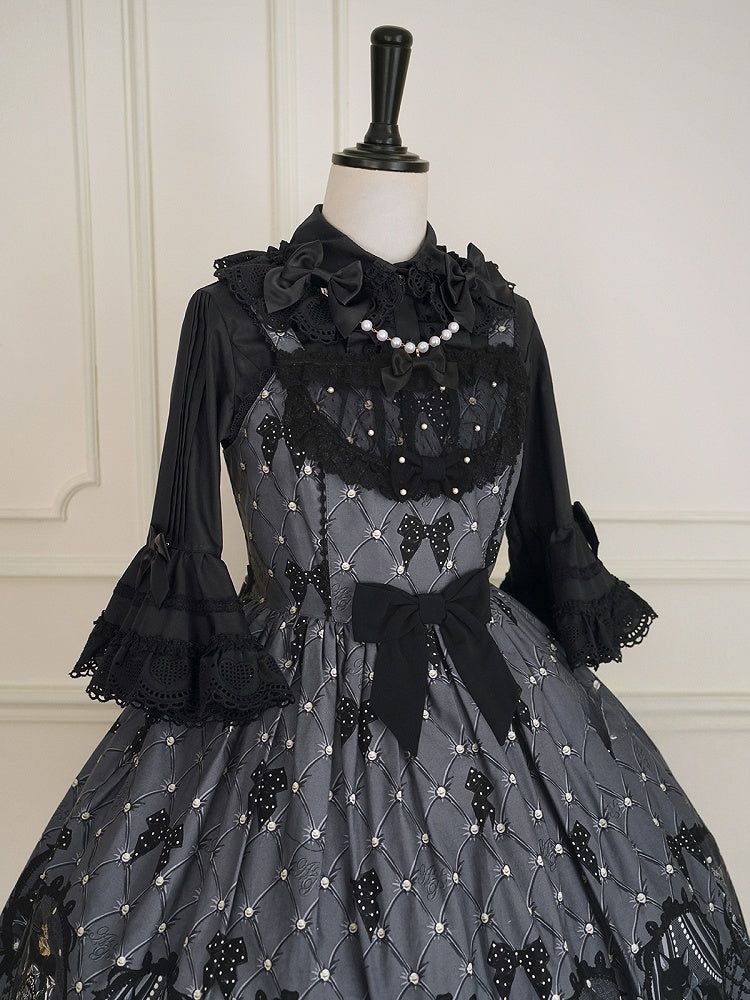 黒と白のオールドスクールロリータファッションドレス蝶結びロリータJSKセット