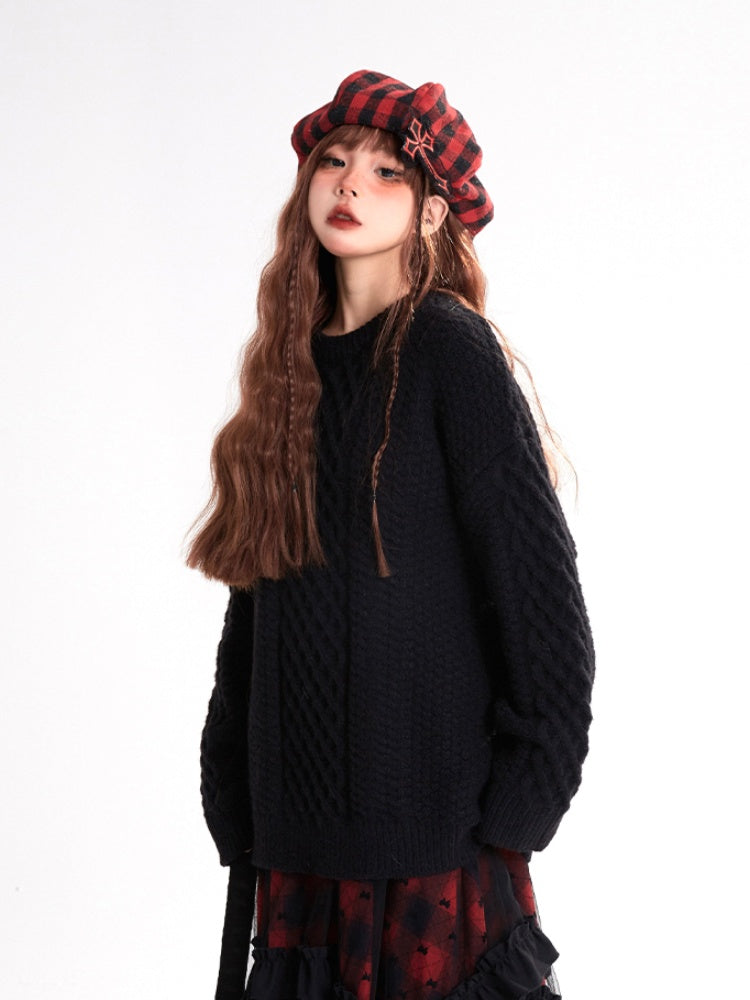 ブラックのラウンドネックルーズセーターで、暖かくスタイリッシュに過ごしましょう。ゆったりとした着心地で、カジュアルなお出かけにぴったりです。この愛らしいセーターで、暖かく、そしてキュートな装いを演出しましょう。
