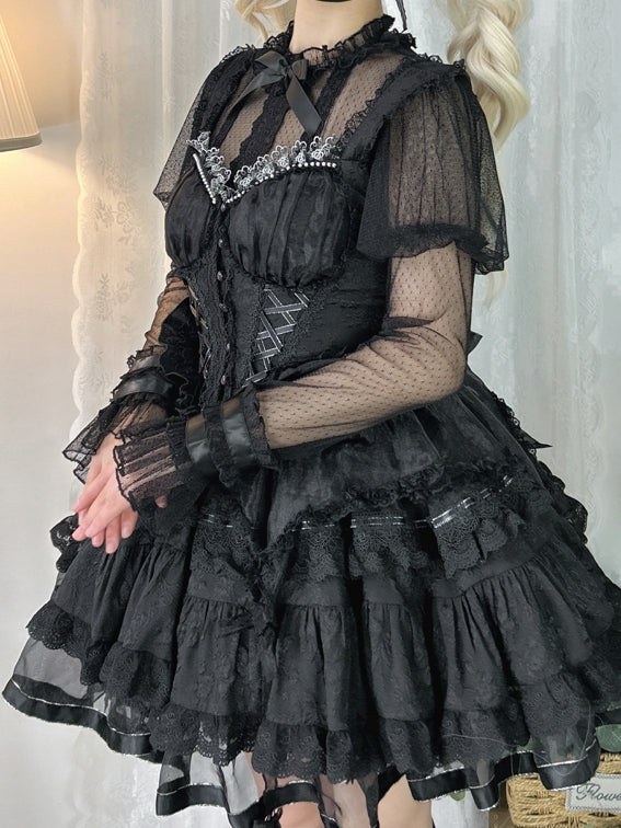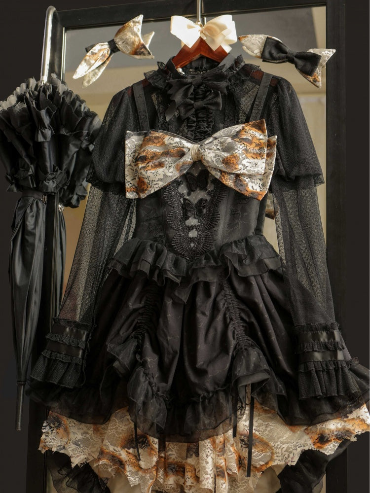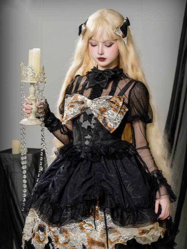黒と白のオールドスクールロリータファッションドレス蝶結びロリータJSKセット