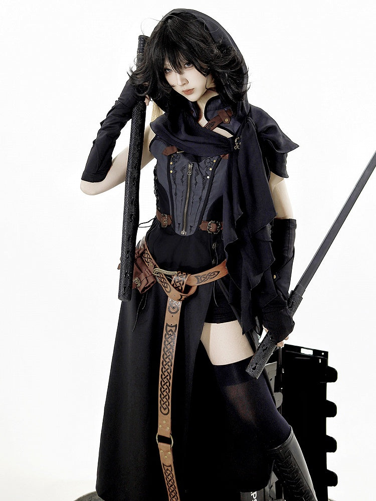 黒と白のオールドスクールロリータファッションドレス蝶結びロリータJSKセット
