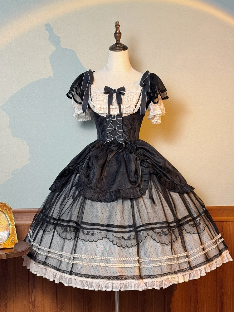 黒と白のオールドスクールロリータファッションドレス蝶結びロリータJSKセット