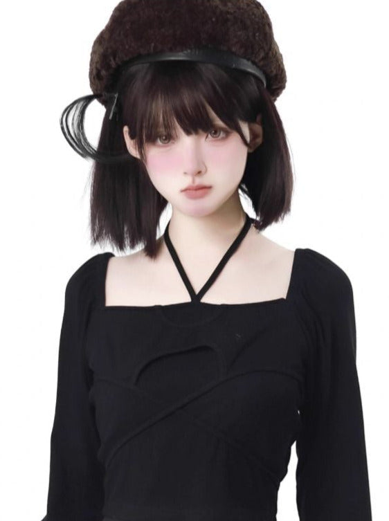 黒と白のオールドスクールロリータファッションドレス蝶結びロリータJSKセット