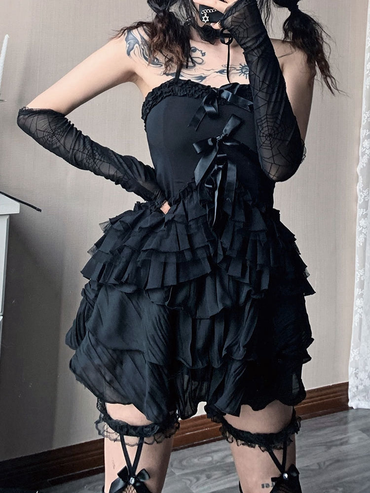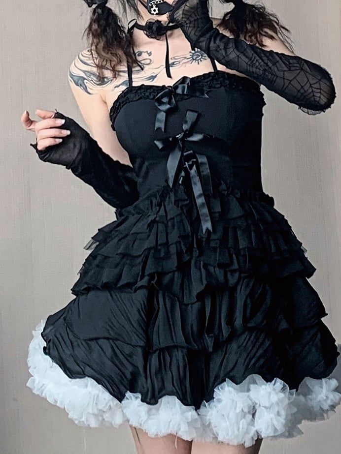 黒と白のオールドスクールロリータファッションドレス蝶結びロリータJSKセット