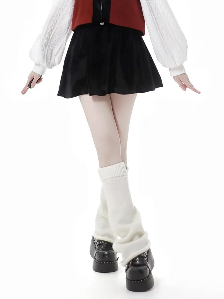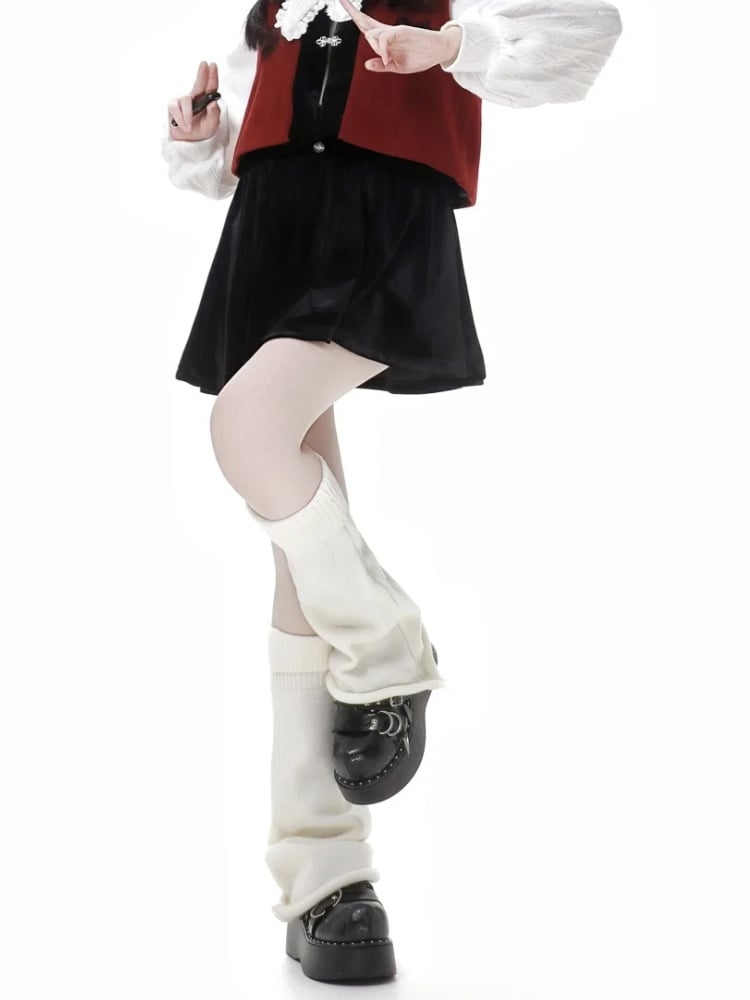 ブラックベルベットの太もも丈ジップ開閉スコート
