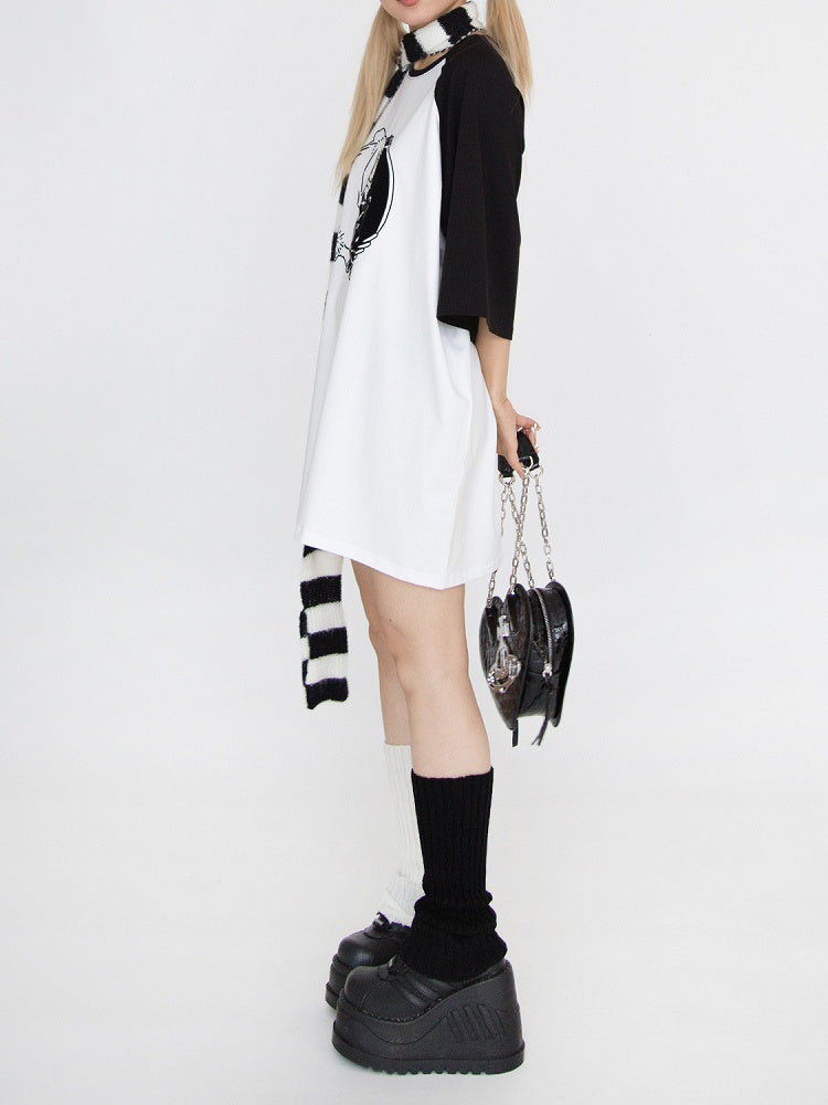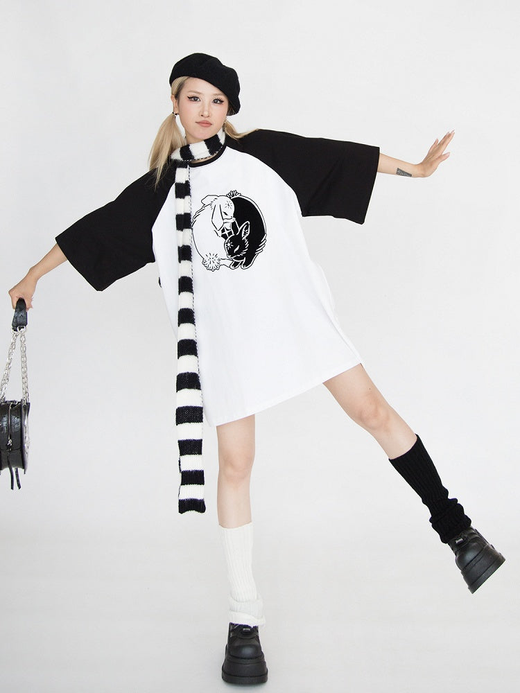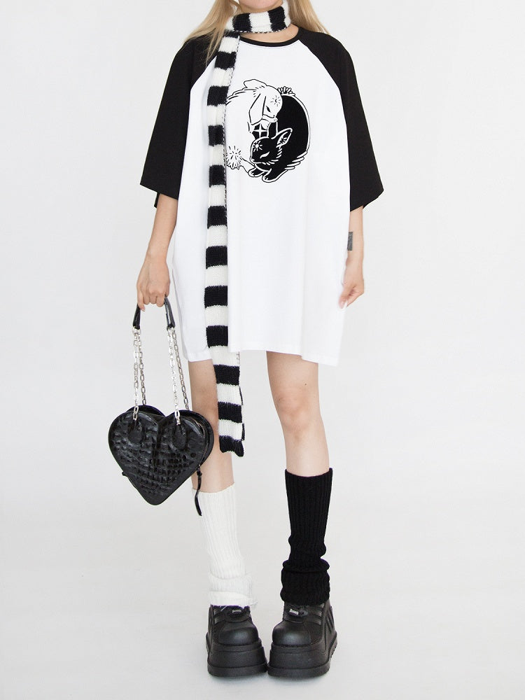 ブラック&ホワイト バニープリント オーバーサイズ Tシャツ
