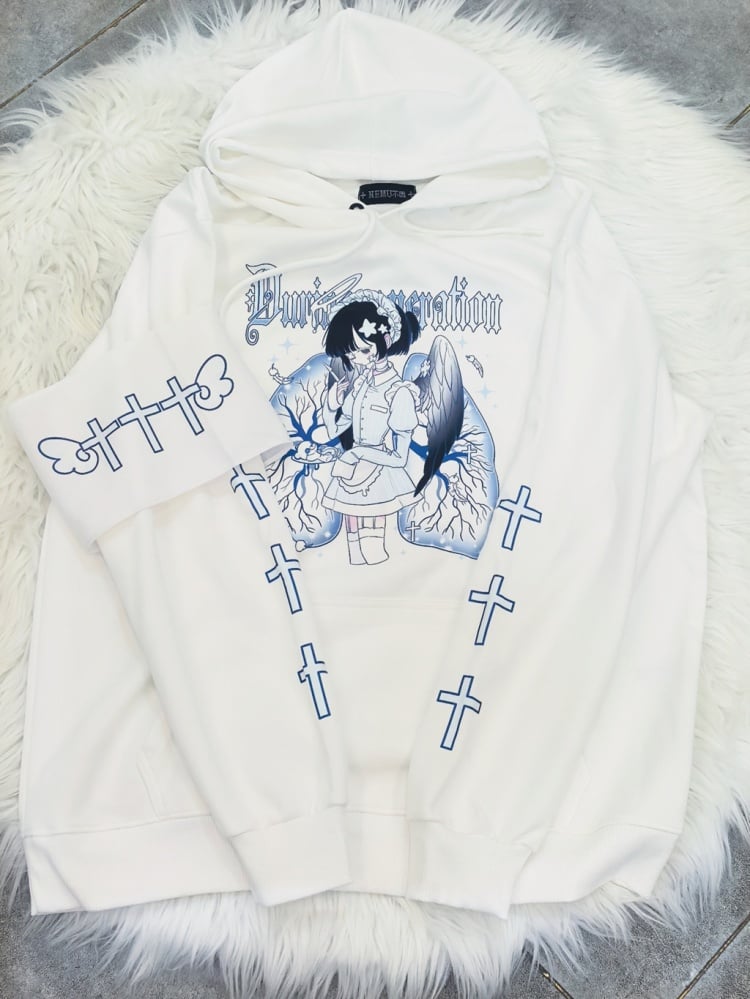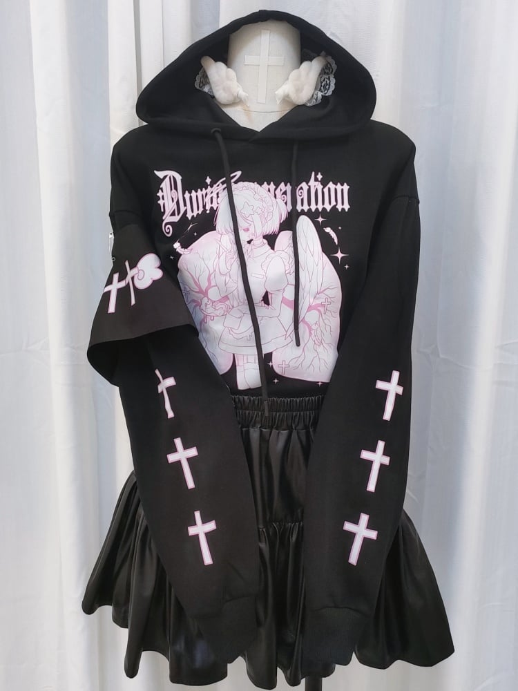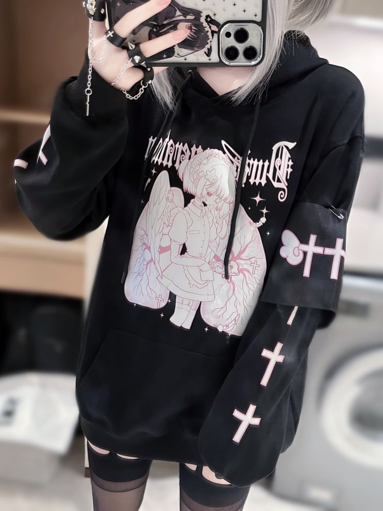 ブラックホワイトのクロス柄グラフィックパーカーで、スタイリッシュに快適に過ごしましょう。キュートなクロス柄が特徴のこのパーカーは、ワードローブに欠かせないアイテムです。暖かく、そして可愛く着こなせます!
