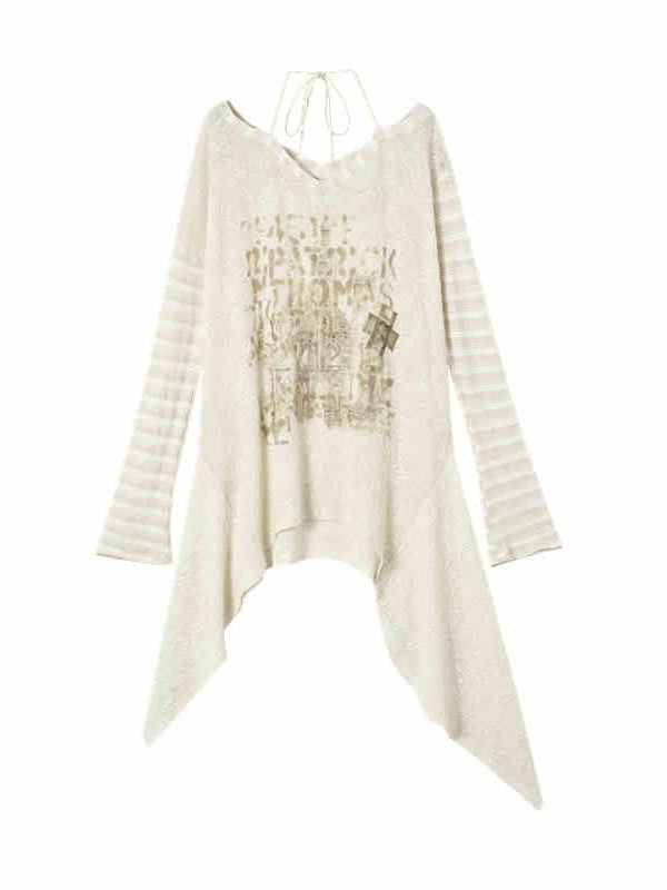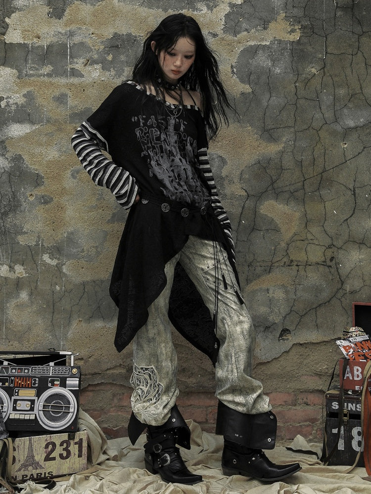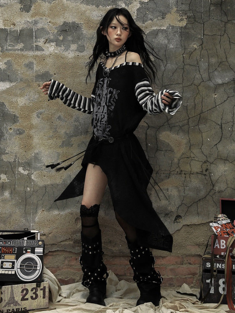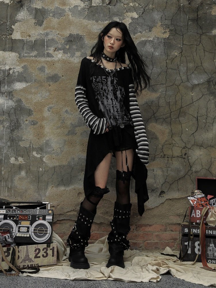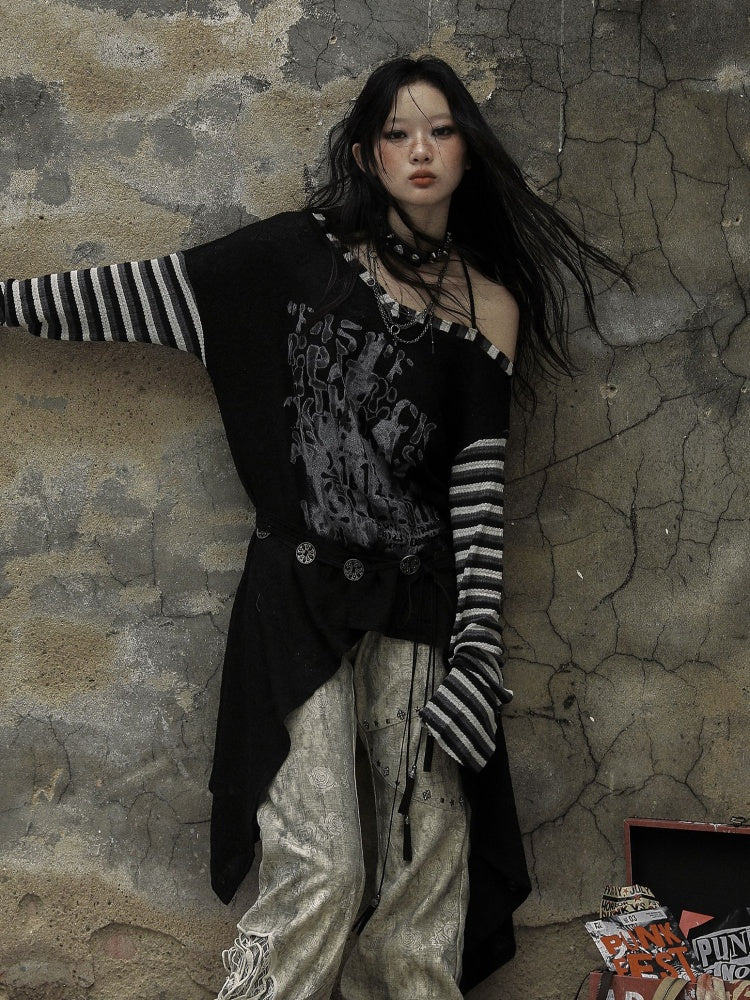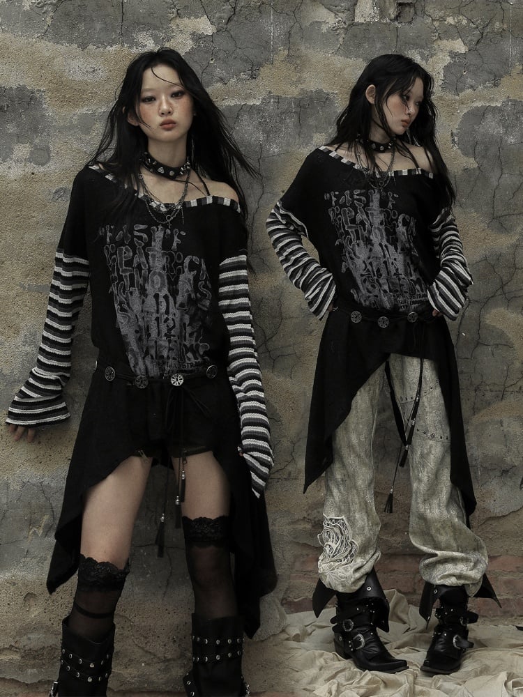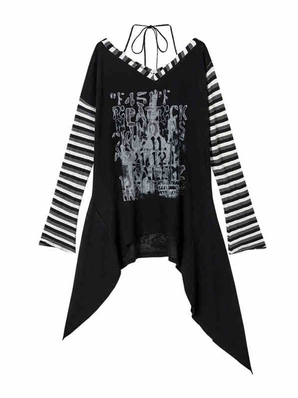 ブラックホワイトゴシックパンクレターズアシンメトリートップス