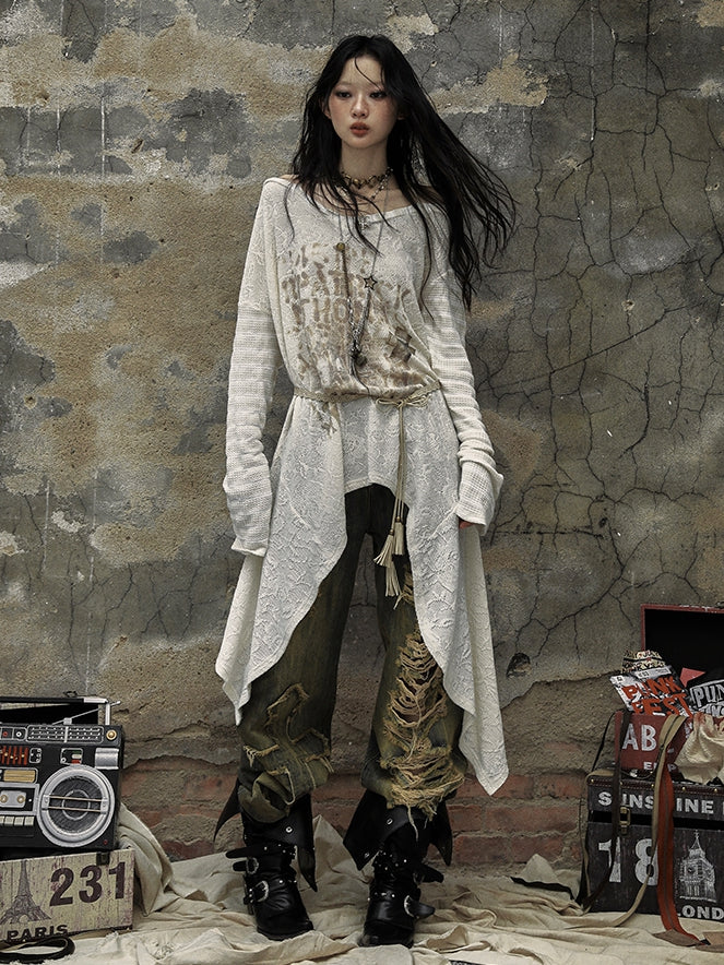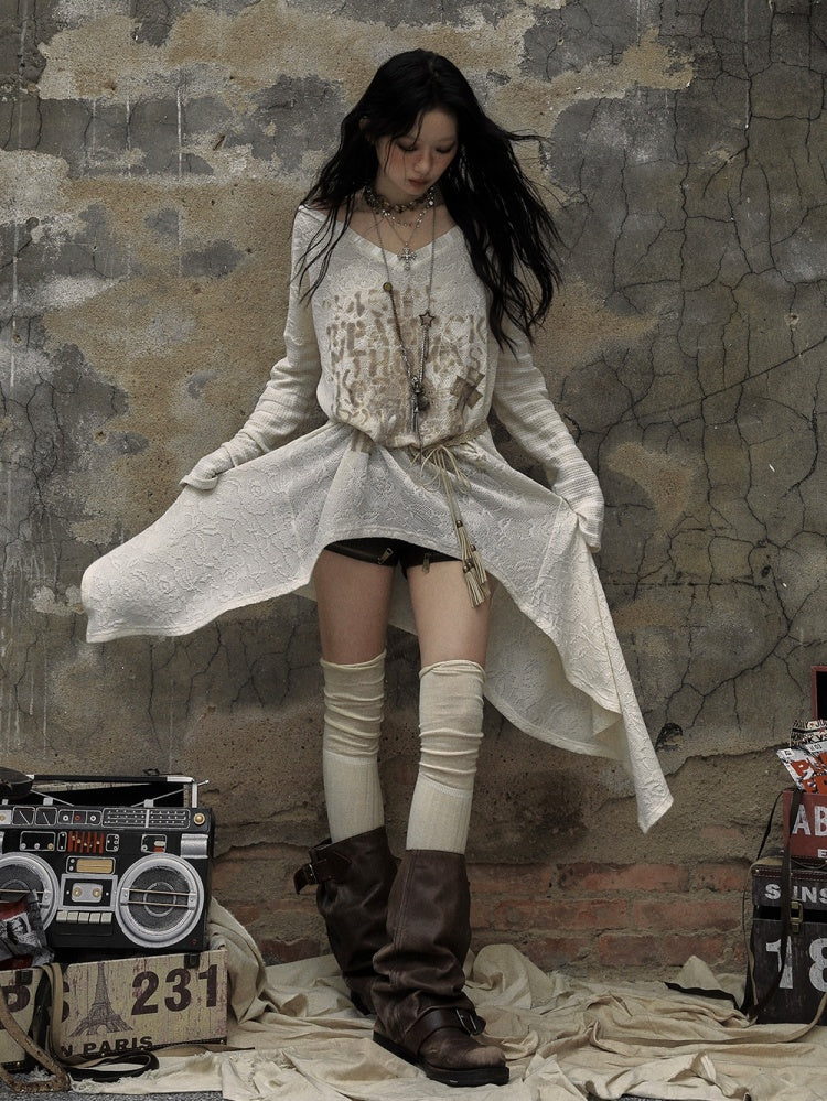 この愛らしいブラック&ホワイトのゴシックパンクレターズがあしらわれたアシンメトリートップスは、どんなコーディネートにも遊び心のあるアクセントを添えてくれます。大胆な文字とアシンメトリーなデザインが、個性的でエッジの効いた印象を与え、人と差をつけたいあなたにぴったりです。上質な素材を使用し、スタイリッシュでありながら着心地も抜群です。
